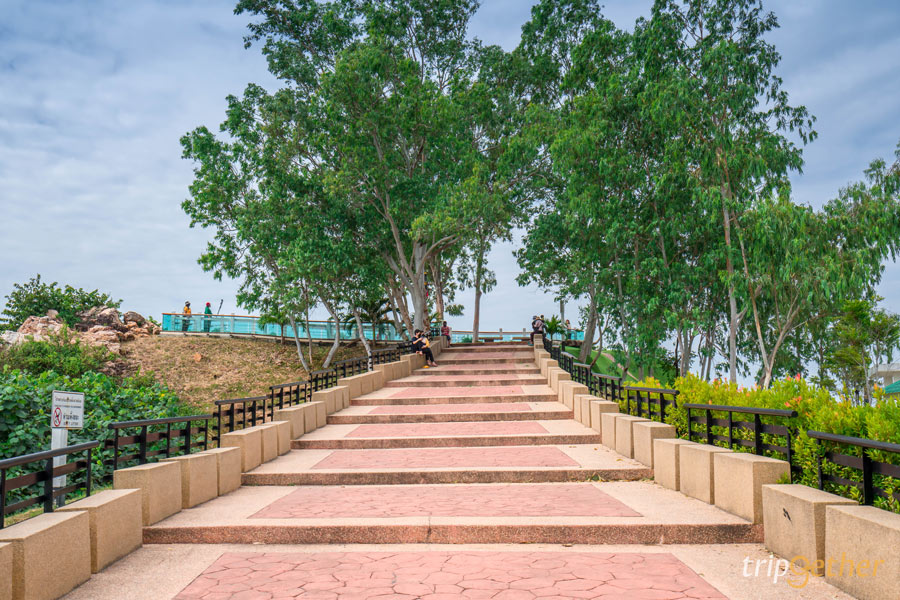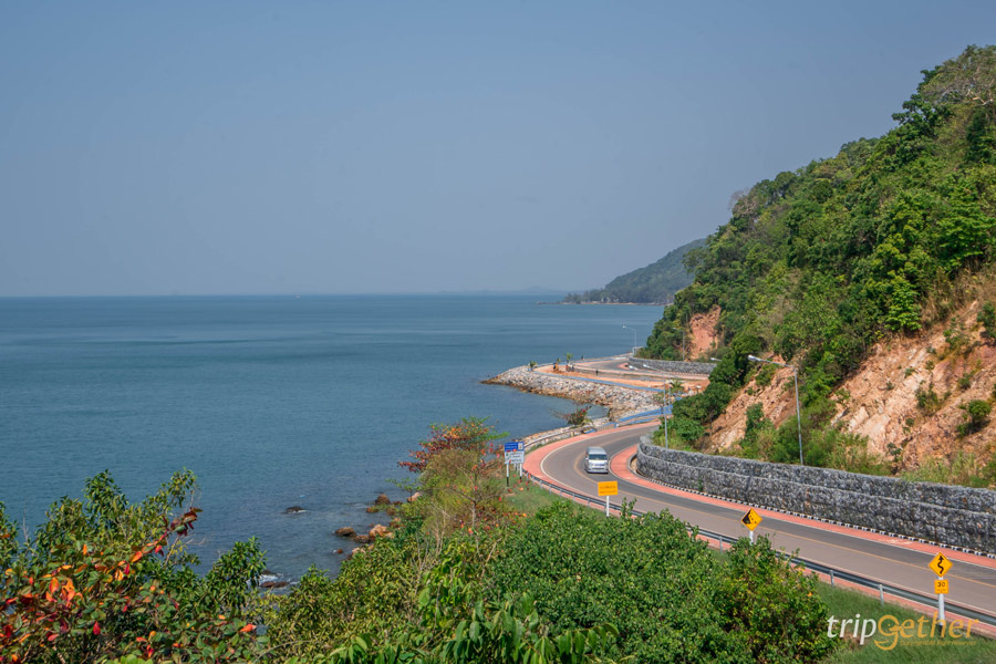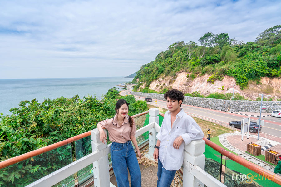 จุดชมวิวยอดฮิตของเมืองจันท์ ที่เรียกได้ว่าต้องห้ามพลาดเลย นั่นก็คือจุดชมวิวเนินนางพญา ภาพแผ่นน้ำที่ตัดกับแผ่นฟ้าไกลสุดลูกหูลูกตา ซึ่งดูเหมือนว่าน้ำและฟ้าต่างสะท้อนกันและกัน เป็นภาพที่ตราตรึงใจใครต่อใครที่ได้แวะมา นอกจากภาพท้องทะเลแล้วยังมีภาพของถนนเฉลิมบูรพาชลทิตที่ทอดยาวเรียบทะเลและคดโค้งตามพื้นที่ชายฝั่ง ที่ฟินกว่านั้นคือระหว่างที่ขับรถขึ้นมาที่จุดชมวิว เราสามารถเปิดกระจกรถแล้วรับลมทะเล พร้อมกับดูภาพวิวทะเลข้างทางได้ไปเพลินๆ