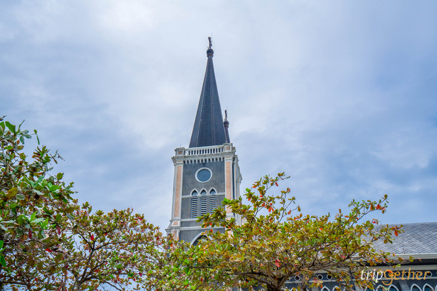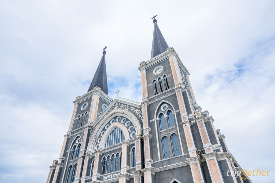 ข้ามแม่น้ำจันทบูรมาตรงข้ามกับชุมชนเก่า ก็จะเห็นภาพของโบสถ์วัดพระแม่ปฏิสนธินิรมล ซึ่งได้ชื่อว่าเป็นโบสถ์คาทอลิกที่สวยที่สุดของไทยตระหง่านอยู่ท่ามกลางลานกว้าง โดยมีรูปเคารพของพระแม่วันทามารีอาเป็นตัวแทนความศรัทธาในศาสนาประทับอยู่ด้านหน้า ตัวอาคารเป็นศิลปะกอธิคที่สุดแสนประณีตและงดงามสมคำร่ำลือ ไม่ว่าจะถ่ายรูปมุมไหนก็ได้ภาพสวยๆ หมดทุกมุม นอกจากนี้บริเวณพื้นที่ของโบสถ์ยังเป็นลานกว้างที่มองเห็นฝั่งของชุมชนได้อีกด้วย เชื่อเลยว่าไม่ว่าใครที่มาก็จะรับรู้ได้ถึงความงามที่มาจากความศรัทธาอย่างเต็มเปี่ยม