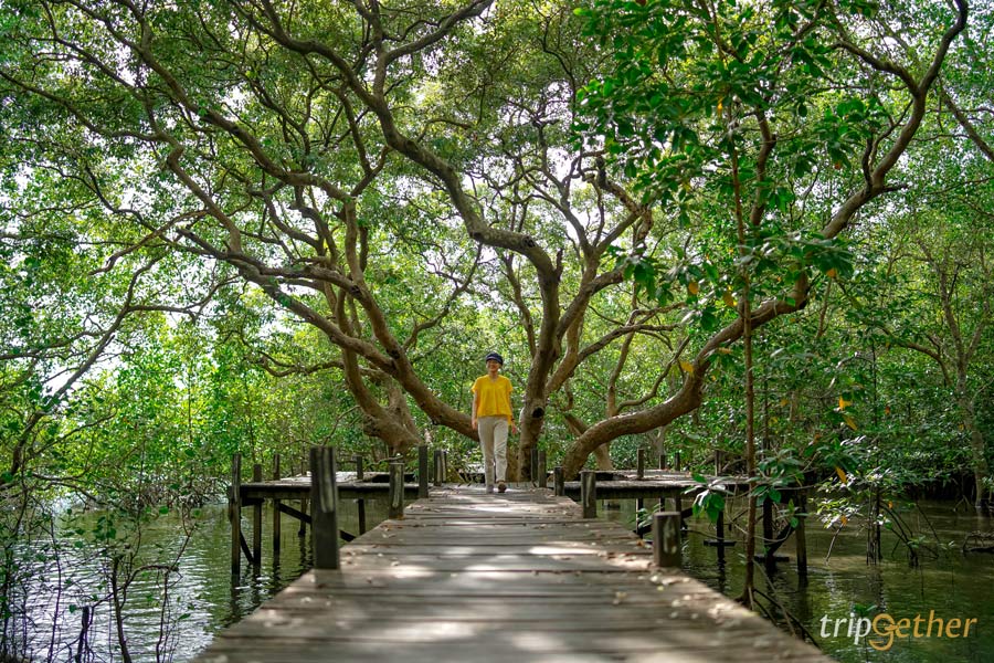 สะพานป่าชายเลนบ้านหัวโขด จ.ระยอง ดินแดนพฤกษาอายุนับร้อยปีที่กว้างใหญ่กว่า 6,000 ไร่ ซึ่งไฮไลท์อยู่ที่ต้นแสมยักษ์ที่แผ่กิ่งก้านอยู่กลางป่า ถือว่าเป็นมุมถ่ายรูปอัปลงโซเชียลของชาวสายกรีนได้เลย ตลอดทั่วทั้งป่าจะมีทางเดินไม้เล็กๆ ที่จะทำให้เราได้สัมผัสกับธรรมชาติอย่างใกล้ชิด และได้เห็นเหล่าสมาชิกตัวเล็กๆ ที่อาศัยในอาณาจักรแห่งนี้ได้อย่างเพลิดเพลิน ไม่ว่าจะเป็นลูกปลา ปู และนกนานาชนิด นอกจากนี้ยังมีบริการเรือให้ได้นั่งรับลมเย็นๆ ชมบรรยากาศวิวป่าชายเลน และสามารถแวะจอดตามจุดต่างๆ ของป่าได้ด้วยราคาเริ่มต้นเพียง 50 บาทเท่านั้น