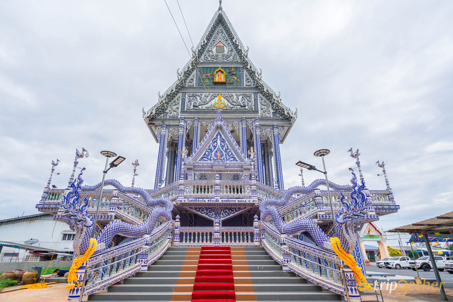 โบสถ์สีน้ำเงินสุดประณีตที่ตั้งตระหง่านคู่กับสายน้ำคือวัดปากน้ำแขมหนู จ.จันทบุรี สถานที่ต้องห้ามพลาดอีกแห่งหนึ่งของเมืองจันท์ โบสถ์ทั้งหลังที่ประดับตกแต่งด้วยเซรามิกสีขาวสลับน้ำเงินอย่างละเอียดในทุกมุมถือเป็นตัวแทนงานศิลป์ที่มาจากความศรัทธาในศาสนาของคนในชุมชน ไม่ว่าจะเดินมุมไหนก็เก็บภาพไว้ลงโซเชียลได้ทั้งหมด อีกทั้งด้านในยังมีภาพจิตรกรรมสุดอลังการที่เป็นเรื่องราวเกี่ยวกับพุทธประวัติและทศชาติชาดกให้ได้ดูกันเพลินๆ อีกด้วย