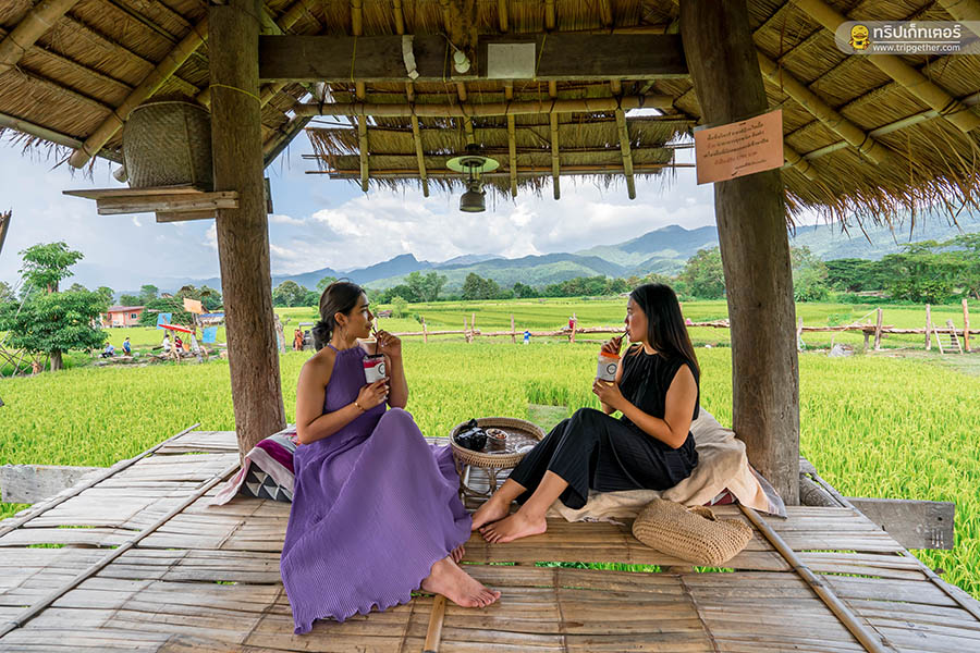 ร้านกาแฟกลางทุ่งนาสไตล์ไทลื้อมาพร้อมสะพานไม้ไผ่สุดเก๋ที่ทอดตัวยาวกลางทุ่งนา เป็นไฮไลท์เด็ดที่ใครได้มาเยือน ร้านกาแฟบ้านไทลื้อ แล้วไม่มาถ่ายรูปที่มุมนี้ก็เหมือนมาไม่ถึง ซึ่งที่นี่มีเมนูเครื่องดื่มมากมายน่าลิ้มลองทั้ง กาแฟ ชา และอีกเมนูที่พลาดไม่ได้เลยก็คือ น้ำผึ้งมะนาวโซดา ที่จะมาเติมความสดชื่นระหว่างวันได้เป็นอย่างดี นอกจากนี้ยังมีมุมสวยๆ ชิลล์ๆ ให้ไปเดินถ่ายรูปเก็บความทรงจำอีกเพียบทั้งมุมกระท่อมกลางนา หรือใครอยากจะไปนั่งโซนระเบียงก็ได้ฟีลดีไปอีกแบบนะ