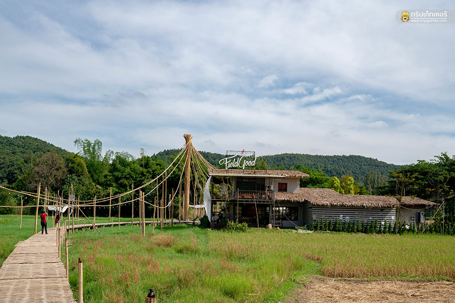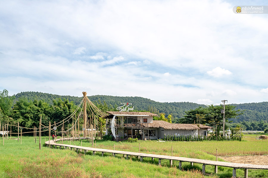 Brandnew Field Good คาเฟ่ตั้งอยู่ที่บ้านปงท่ามกลางท้องทุ่งนาอันเขียวขจีเรียกแขกให้เข้ามาเชยชมได้ดีกับบรรยากาศสบายๆ พร้อมกับสะพานไม้กลางทุ่งนาที่ทอดตัวยาวเป็นทางเดินเข้าตั้งแต่หน้าร้านไปจนถึงตัวร้านด้านใน ซึ่งตลอดทางก็จะมีจุดแวะถ่ายรูปชิคๆ เป็นมุมสวยที่ใครได้มาแล้วต้องแวะตามจุดต่างๆ ของสะพานเพื่อเก็บภาพบรรยากาศเหล่านี้เอาไว้ ตัวร้านตกแต่งเรียบง่ายเน้นวัสดุกลมกลืนกับธรรมชาติที่มีโซนให้เลือกนั่งหลากหลายทั้งอินดอร์และเอ้าท์ดอร์ เมนูอาหารของที่นี่มีให้เลือกทั้งคาวหวานที่รับรองเลยว่าใครได้มาเยือนแล้วต้อง Feel so Good อย่างแน่นอน