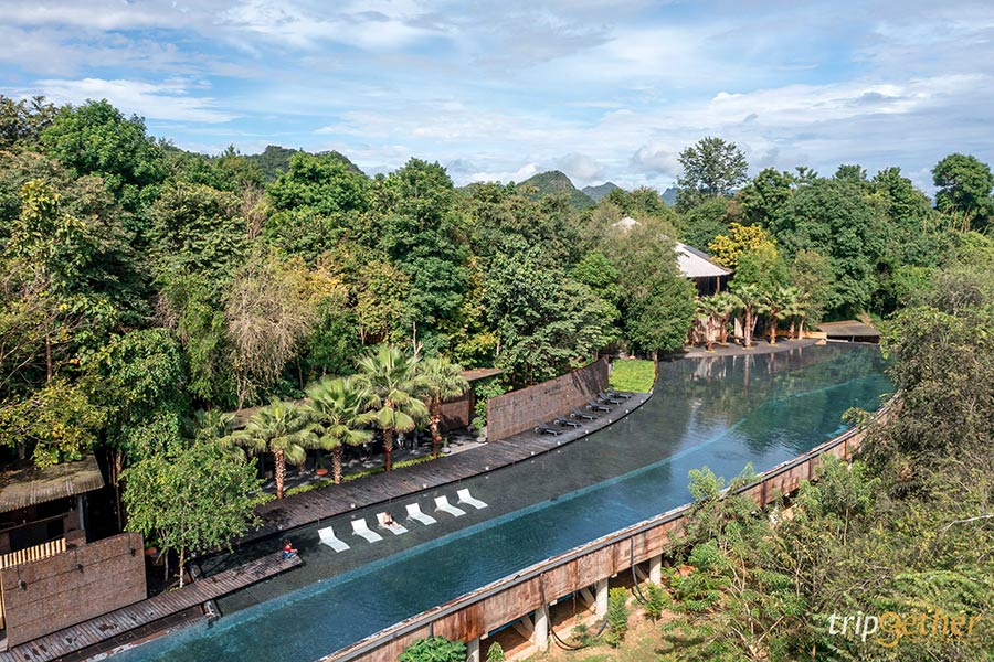 ณดล สตรีมไซด์ ไทย วิลล่า ที่พักหรูหราท่ามกลางธรรมชาติกับความสะดวกสบายขั้นสุด ตัวที่พักตั้งอยู่ใต้ร่มเงาไม้และมีความสดชื่นของลำธาร เรียกได้ว่าบรรยากาศเหมาะกับการมานอนหนีร้อนมาก ส่วนการออกแบบห้องพักสื่อถึงเอกลักษณ์ความเป็นไทย มีความประณีตงดงาม อีกทั้งยังมีกลิ่นอายตะวันตกที่ดูทันสมัย นอกจากนี้ยังมีบริการและสิ่งอำนวยความสะดวกต่างๆ ไม่ว่าจะเป็นห้องอาหาร บาร์ คาเฟ่ สระว่ายน้ำ สำหรับใครที่อยากปลีกตัวจากความวุ่นวายในกรุงเทพฯ มาหาความเงียบสงบ ต้องมาที่นี่เลย