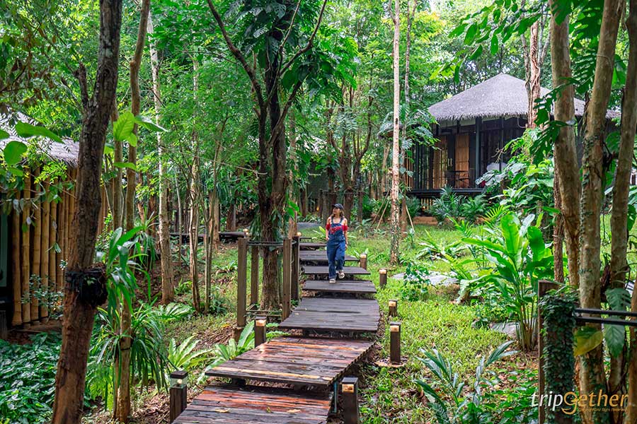 River Tales ที่พักแก่งกระจานที่มีทั้งบรรยากาศกลางป่าและริมน้ำ ภายในที่พักอุดสมบูรณ์ไปด้วยต้นไม้นานาพันธุ์ แค่เดินเข้ามาก็รู้สึกเฟรชมากๆ ห้องพักแบ่งออกเป็น 2 โซนหลักๆ ก็คือโซนเต็นท์แอร์ที่ข้างในมีสิ่งอำนวยความสะดวกครบครัน ใครอยากลองนอนเต็นท์กลางธรรมชาติสบายๆ แนะนำให้เลือกโซนนี้เลย ส่วนอีกโซนเป็นบ้านริมน้ำ มีให้เลือกหลายแบบทั้งแบบอ่างออนเซ็น บ้านวิลล่า แถมแต่ละหลังตั้งห่างกันเพื่อความเป็นส่วนตัวและมีระเบียงให้นั่งชิลล์ บ้านพักของที่นี่รองรับหลายกลุ่มมาก จะมาเป็นครอบครัว แก๊งค์เพื่อน หรือคู่รักก็พร้อมต้อนรับ เป็นที่พักกลางป่าที่เหมาะกับหนีอากาศร้อนๆ มาให้ธรรมชาติบำบัดมาก