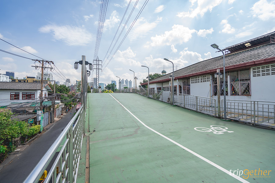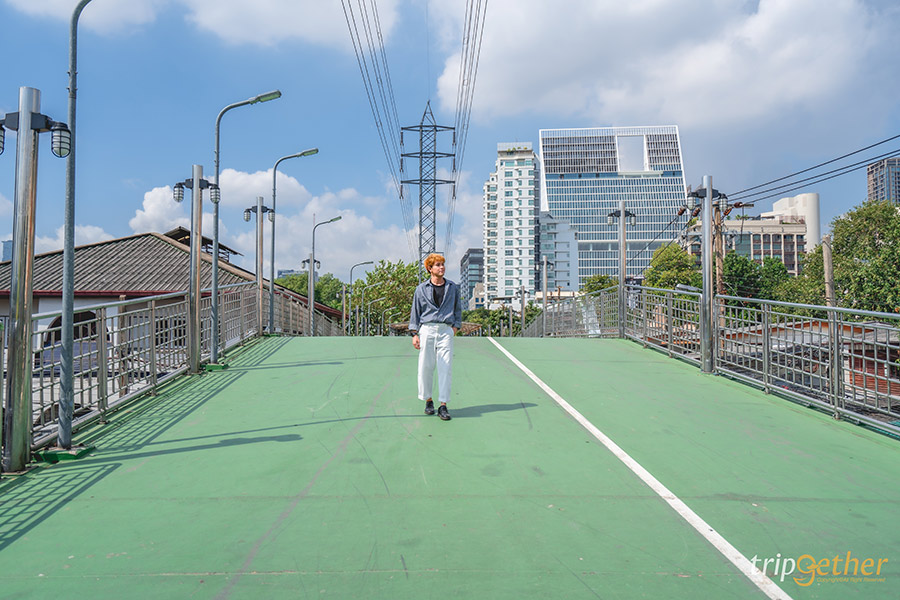 สะพานเขียว สะพานสุดน่ารักฟีลญี่ปุ่นที่เป็นทางยกระดับเชื่อมระหว่างสวนลุมพินีกับสวนเบญจกิติ ซึ่งสามารถเดินทางมาได้ทั้งสถานีรถไฟฟ้า MRT ลุมพินีและศูนย์ประชุมแห่งชาตสิริกิติ์ บนสะพานที่ทอดยาวสีเขียวสุดคิ้วท์นี้ นอกจากจะเป็นทางออกกำลังกายที่ได้ทั้งวิ่ง เดิน และปั่นจักรยานแล้ว ยังเป็นที่เที่ยวใกล้รถไฟฟ้าที่บอกเลยว่าถ่ายรูปสวยสุดๆ ยิ่งมาในช่วงที่ฟ้าสดใส มองเห็นความสดของสีฟ้า และเมฆก้อนเล็กๆ ภาพที่ได้ราวกับอยู่ต่างประเทศเลยล่ะ