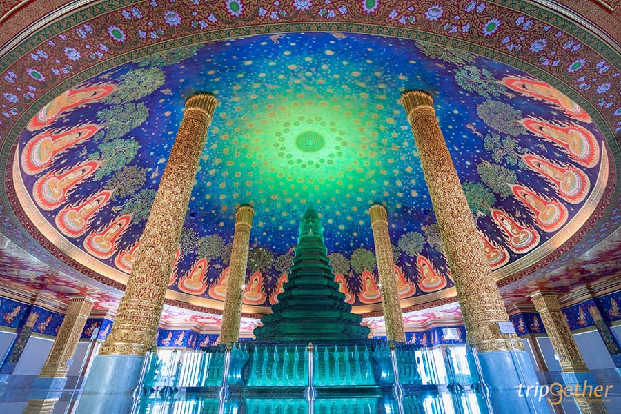 วัดปากน้ำภาษีเจริญ วัดชื่อดังที่มีเอกลักษณ์สุดงามด้วยพระพุทธรูปปางสมาธิสีทององค์ใหญ่คือพระพุทธธรรมกายเทพมงคล ที่มีความสูงมากถึง 69 เมตร และพระมหาเจดีย์มหารัชมงคล พระเจดีย์สีขาวที่ตั้งอยู่เคียงคู่กับพระพุทธรูป ซึ่งภายในพระมหาเจดีย์ฯ มีทั้งหมด 5 ชั้น โดยแต่ละชั้นก็จะจัดแสดงงานพุทธศิลป์และเป็นพิพิธภัณฑ์ที่แตกต่างกันออกไป และชั้นที่เป็นไฮไลท์ก็คือชั้นที่ 5 เป็นที่ประดิษฐานของพระบรมสารีริกธาตุ และมีภาพจิตรกรรมที่สวยงามตามเพดานและผนัง อีกทั้งยังสามารถออกมาชมวิวและถ่ายรูปด้านนนอกของระเบียงได้อีกด้วย โดยวัดปากน้ำภาษีเจริญสามารถเดินทางโดยนั่งรถไฟฟ้า MRT มาลงที่สถานีบางไผ่ จากนั้นก็สามารถต่อรถมอเตอร์ไซด์รับจ้างเข้ามาได้เลย