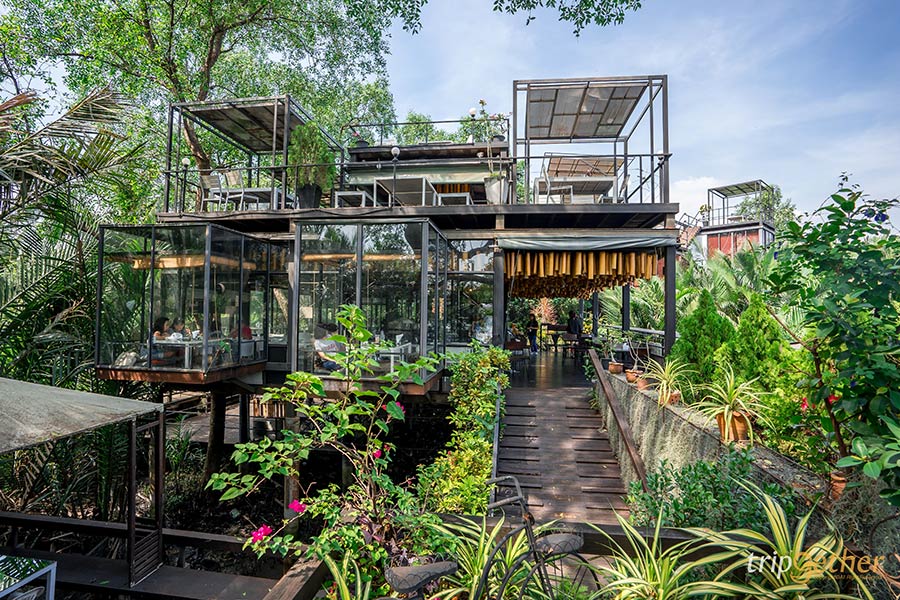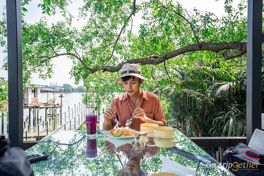 Bangkok Tree House เป็นทั้งคาเฟ่ ร้านอาหารและที่พักสไตล์ Eco หากไม่ได้เข้าพัก ก็สามารถไปใช้บริการที่ตัวร้านอาหารและคาเฟ่ได้ โซนที่นั่งชั้นแรกตกแต่งด้วยกระจกใสบานใหญ่รอบทิศทาง ทำให้บรรยากาศปลอดโปร่งโล่งสบาย ท่ามกลางต้นไม้ใหญ่ขนาบข้าง ส่วนที่นั่งชั้นสองสามารถมองเห็นวิวแม่น้ำเจ้าพระยาได้ ทางร้านมีบริการทั้งของคาว ของหวาน และเครื่องดื่มหลากหลาย ทั้ง coffee และ non-coffee ใครที่อยากหาร้านสำหรับพักผ่อนหรือเดินเล่นถ่ายรูป ลองแวะมา Bangkok Tree House ดูนะ