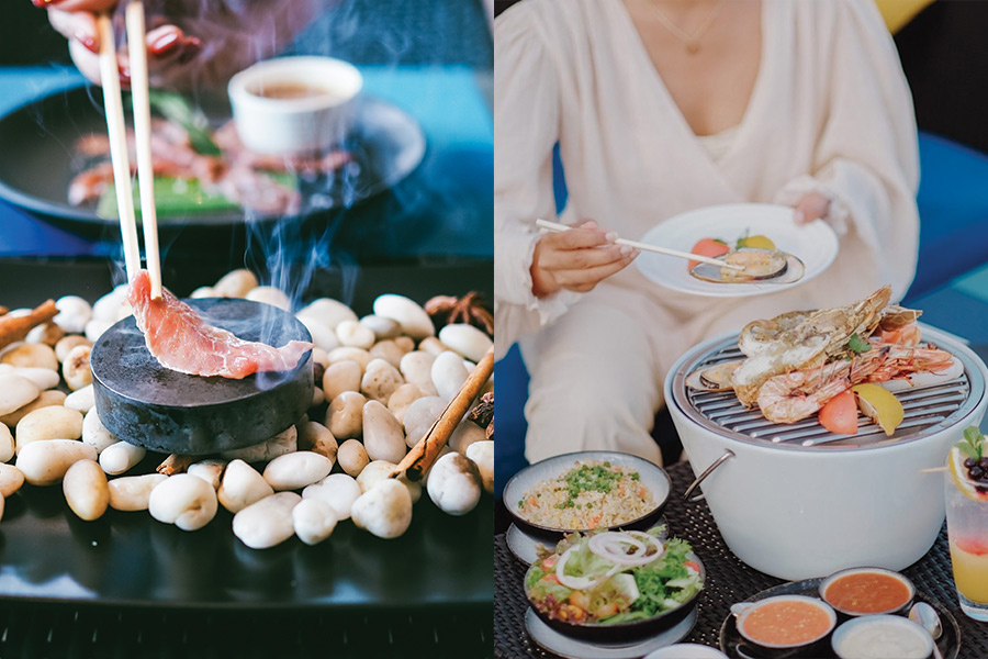 ตามมาด้วยร้านอาหารริมทะเลวิวฉ่ำริมหาดเขาตะเกียบ ตั้งอยู่หลังโรงแรมอมารี หัวหิน ที่พร้อมเสิร์ฟเมนูอร่อยอย่าง เนื้อจี่หินร้อน (Seared Hot Rock) สามารถเลือกสูตรรับประทานได้ทั้ง สันในวัวออสเตรเลีย ซอสไอโอลี่ และสันในแกะออสเตรเลีย ซอสมิโซะมะนาว เสิร์ฟความอร่อยมากับเบียร์คราฟต์ 1 แก้ว โดยเนื้อที่เสิร์ฟเป็นเนื้อนำเข้าส่งตรงถึงโต๊ะให้คุณอร่อยไปกับบรรยากาศของร้านได้เป็นอย่างดี ใครที่อยากหาสถานที่พักผ่อนวิวงามตาก็ต้องแวะมาที่ Shoreline Beach Club