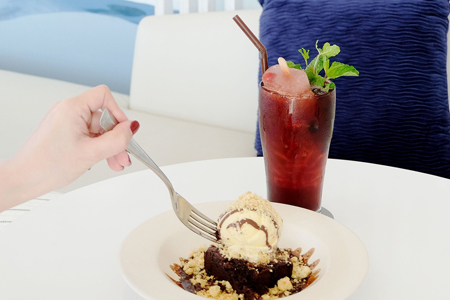 Skoop Beach Café คาเฟ่ริมหาดสไตล์ Beachfront ที่เน้นบรรยากาศโดยรอบในโทนสีฟ้าและน้ำเงินสดใส เข้ากับบรรยากาศของท้องทะเลได้เป็นอย่างดี นอกจากนี้ยังมีบีนแบค เตียงชายหาด ร่มชายหาด และสระว่ายน้ำให้ไปนั่งถ่ายรูปเก๋ๆ ได้ฟีลปิกนิกริมทะเลด้วย สำหรับเมนูอร่อยต้องลิ้มลอง Sunrise Slurpee, Midnight Slurpee, Sunset Slurpee, Nori Fries, Wasabi Fries, Marshmallow Toast, Lychee Soda, Costa Bana Waffle, Curly Fries, Bora Bora Vanilla Shake และอีกหลายเมนูที่จะมาเติมความหวานให้คุณได้เป็นอย่างดี