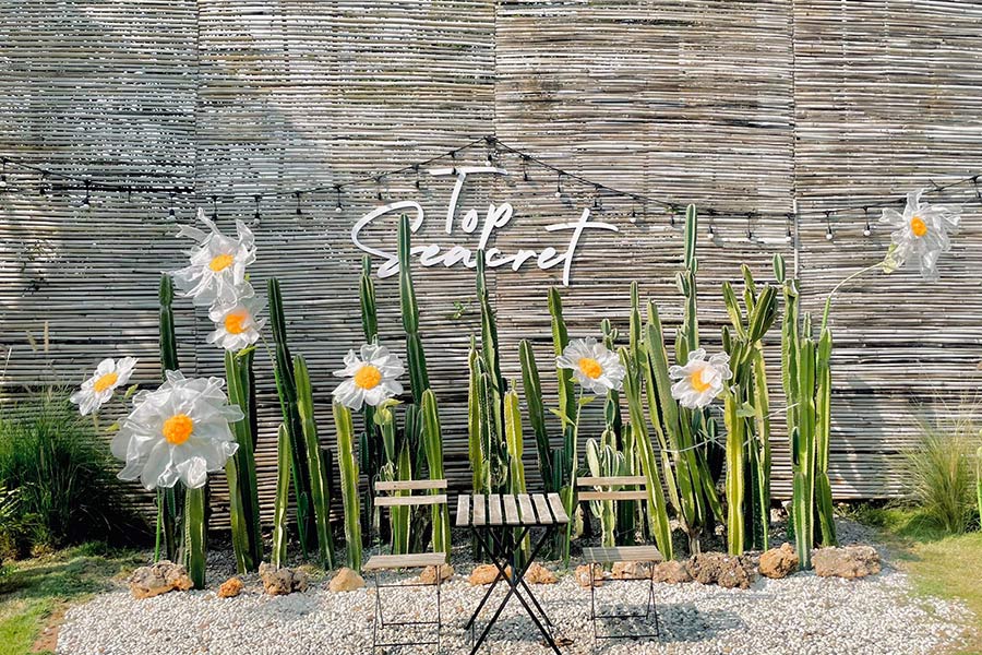 Top Seacret Beach Cafe คาเฟ่สไตล์บาหลีตั้งอยู่ติดริมทะเลหัวหิน ที่ออกแบบด้วยวัสดุธรรมชาติให้อารมณ์สไตล์ทรอปิคอลแบบป่าร้อนชื้น ที่เน้นใช้โทนสีน้ำตาลตัดกับสีชมพูเข้ากันได้เป็นอย่างดี นอกจากนี้ยังมีมุมถ่ายรูปปังๆ มากมายทั้งรังนกบาหลี ชิงช้า เก้าอี้ชายหาด ให้ถ่ายรูปเพียบ สำหรับเมนูที่ต้องลิ้มลองมีทั้ง สปาเก็ตตี้ฉู่ฉี่กุ้ง กุ้งแม่น้ำอบชีส และกุ้งแม่น้ำผัดพริกเกลือ ที่บอกเลยว่าฉ่ำมาก!
