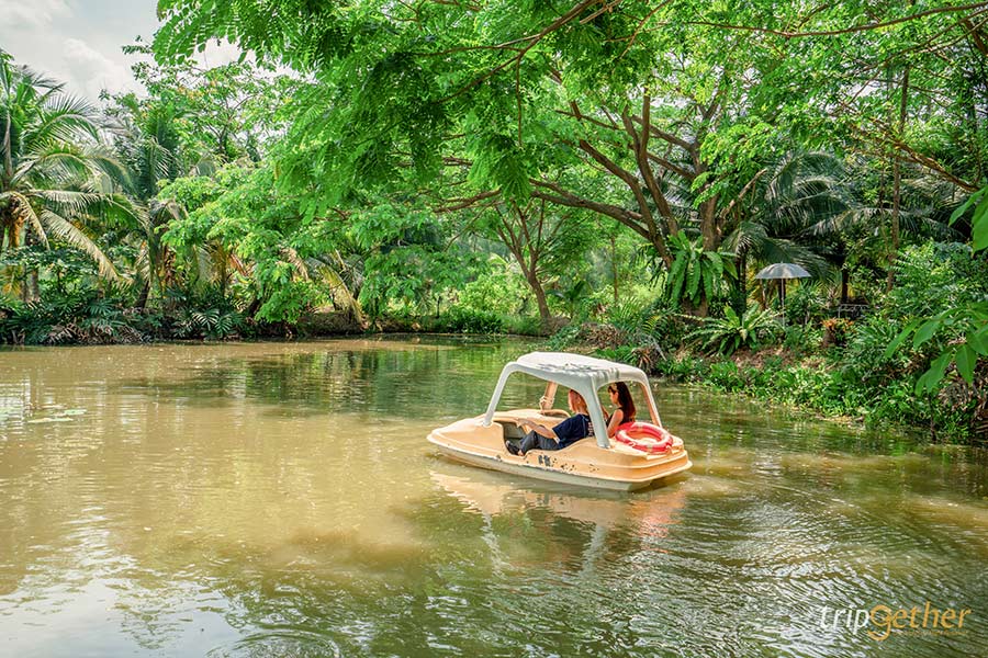 O2 Kaffee & Bistro ร้านอาหารครอบครัวนครปฐมสุดร่มรื่น เพราะตั้งอยู่กลางสวนมะพร้าวและร่องสวนที่มีปลาแหวกว่ายอยู่มากมาย เรียกได้ว่าทั้งสดชื่นและใกล้ชิดธรรมชาติสุดๆ ไฮไลท์ของทางร้านก็คือกิจกรรมเรือกระด้ง ที่ได้ยกเอาความสนุกสนานสุดตื่นเต้นมาจากเวียดนามกันเลยทีเดียว ในส่วนของโซนที่นั่งของร้านส่วนใหญ่จะเป็นซุ้มเปิดโล่งที่ตั้งอยู่ริมน้ำ เหมาะกับการพาครอบครัวและผู้ใหญ่มานั่งสบายๆ ในส่วนของเมนูอาหารก็จะเน้นส่วนผสมจากมะพร้าวทั้งเมนูอาหารและเมนูขนม เมนูมะพร้าวแนะนำของร้านที่มาแล้วต้องสั่งเลยก็คือ ขาไก่ตุ๋นมะพร้าวอ่อน ยำมะพร้าวอ่อนกุ้งสด เค้กมะพร้าว เค้กมันม่วงมะพร้าว เอส O2 กาแฟมะพร้าว อเมริกาโน่มะพร้าว นมสดมะพร้าวน้ำหอม ชาเขียวมะพร้าวน้ำหอม ชานมมะพร้าวน้ำหอม และอัญชันมะพร้าวน้ำหอม วันหยุดนี้ใครไม่รู้จะไปไหน ต้องลองมาใช้เวลาที่นี่สักมื้อแล้ว