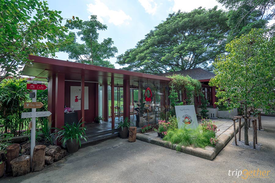 Little red riding hood eatery and garden อีกคาเฟ่สวยย่านศาลายากับธีมนิทานหนูน้อยหมวกแดง บรรยากาศในร้านร่มรื่นจากต้นไม้ใบหญ้าและมีสวนอังกฤษที่เหมาะกับการมานั่งชิลล์จิบชากาแฟ สำหรับการออกแบบเน้นโทนสีแดงให้สอดคล้องกับเรื่องหนูน้อยหมวกแดง นอกจากนี้ยังมีกิมมิคน่ารักในการตั้งชื่อโซนที่นั่งตามตัวละครต่างๆ เริ่มจากโซนคุณยาย เป็นห้องจัดเลี้ยงที่เหมาะกับการมาจัดงานสังสรร ต่อมาโซนหมาป่า เป็นที่นั่งกลางสวนใต้ร่มเงาไม้ มีลมสบายๆ พัดมาตลอด และสุดท้ายโซนหนูน้อยหมวกแดงเป็นที่นั่งกลางร้าน บรรยากาศโล่งโปร่ง สำหรับเมนูทางร้านจัดเต็มมากทั้งของคาวและของหวาน ที่มาแล้วต้องสั่งก็คือ หมูกรอบคั่วพริกเกลือ พิซซ่าสโมคแซลม่อน และไก่ Buffulo Wing Mix วันหยุดนี้ปักหมุดร้านน่านั่งเลย