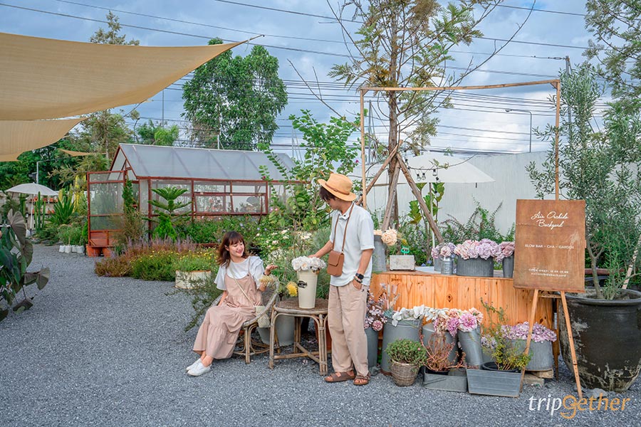 The Flask Cafe by Air Orchids คาเฟ่นครปฐมน่ารักๆ ที่เป็นเหมือนโอเอซิสกลางซุปเปอร์มาร์เก็ตกล้วยไม้ของ Air Orchids ตัวคาเฟ่เป็นเรือนกระจก การตกแต่งเน้นโทนสีขาวและไม้ ทำให้บรรยากาศร้านโล่งโปร่งและสะอาดตา บวกกับการเอาต้นไม้สีเขียวมาประดับตามจุดต่างๆ ช่วยเพิ่มความเป็นชีวิตชีวาให้กับร้าน ส่วนเมนูที่ทางร้านเสิร์ฟมีครบทั้งอาหารจานเดียว ขนมหวาน และเครื่องดื่ม เป็นคาเฟ่ที่เหมาะกับการมานั่งชิลล์ๆ หลังช้อปปิ้งต้นไม้มาก และนอกจากนี้ยังมีโซนเปิดใหม่สำหรับสายถ่ายรูปสวยๆ ให้ฟีลสวนหลังบ้านอย่างโซน Backyard มีมุมถ่ายรูปรถบ้านเก๋ๆ มุมสวนดอกไม้ มุมต้นกระบองเพชร บอกเลยว่ามาโซนนี้ได้รูปสวยฟีลเกาหลีกลับไปเพียบ