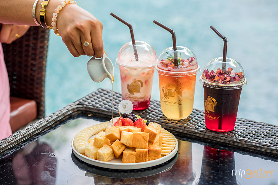 Tamarind Cafe & Bistro ร้านอาหารสุดน่ารักที่ตั้งอยู่ใน อ.สามพราน นครปฐม มาพร้อมกับสีสันของเหล่าดอกไม้มากมายที่ตกแต่งอยู่ทั่วทั้งร้าน อีกทั้งกลางร้านยังเป็นพื้นที่ของสระน้ำสีเขียวสมรกตพร้อมกับทางเดินกลางน้ำ ที่เป็นมุมถ่ายรูปเช็คอินยอดฮิต นอกจากนี้ในร้านยังมีเหล่าฝูงเป็ดและปลาแหวกว่ายอยู่ในน้ำให้ได้ถ่ายรูปสวยๆ อีกด้วย โซนที่นั่งของร้านมีทั้งโซนอินดอร์ที่เป็นห้องแอร์เย็นฉ่ำและโซนไฮไลท์อย่างโซนเอาท์ดอร์ติดริมน้ำ โดยมีทั้งที่นั่งแบบชุดโต๊ะเก้าอี้ บาร์ห้อยขา หรือจะเป็นบีนแบค ก็สุดชิลล์ และเมื่อถึงช่วงค่ำทางร้านก็จะเปิดไฟหลากหลายสีสัน ทำให้บรรยากาศเหมือนหลุดเข้าไปในดินแดนแห่งความฝันยังไงอย่างงั้นเลยทีเดียวเป็นร้านสวยน่านั่งที่ต้องห้ามพลาดเลย