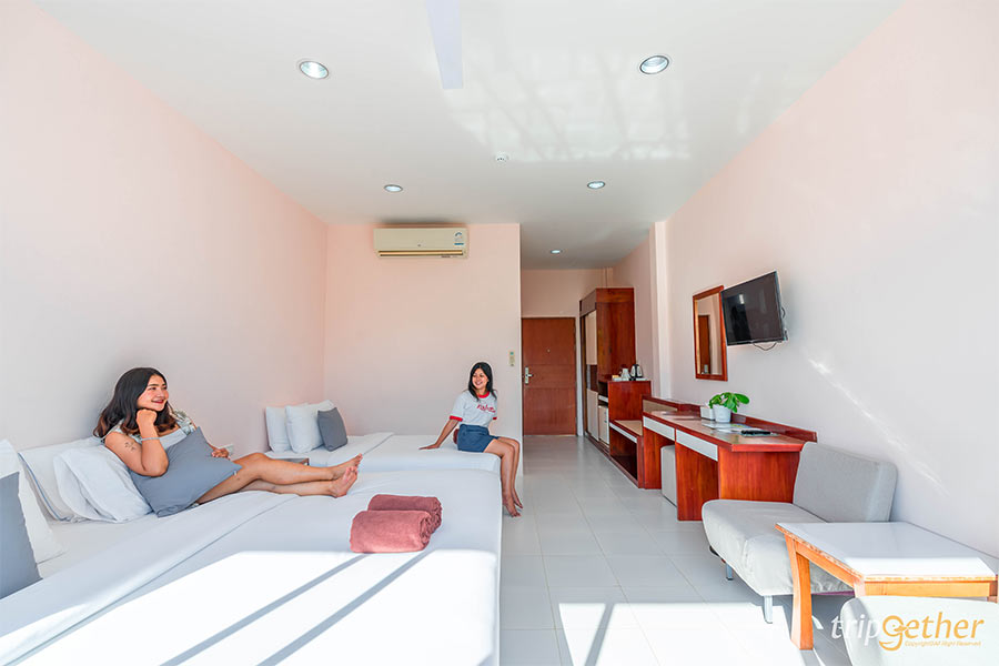 ห้อง Triple (เข้าพัก 3 คน) วันอาทิตย์ – พฤหัสบดี ราคา 2,800 บาท และ วันศุกร์ – เสาร์ ราคา 3,000 บาท //