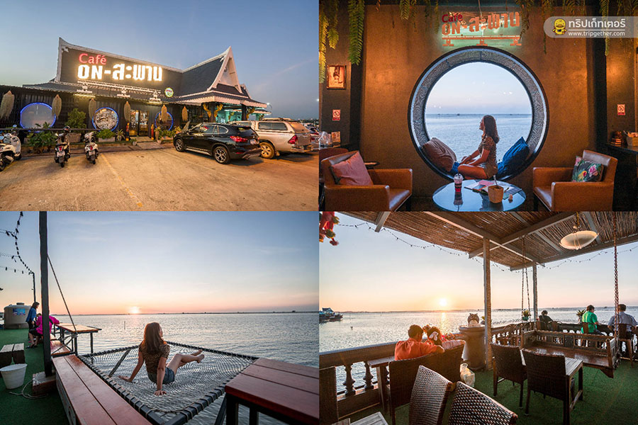 มาต่อกันที่ คาเฟ่ ออน สะพาน คาเฟ่บรรยากาศสุดชิลล์ ที่เรียกได้ว่าเป็นคาเฟ่กลางทะเลบนสะพานแห่งเดียวในประเทศไทย สำหรับตัวคาเฟ่ตั้งอยู่บนถนนเลียบชายทะเล ชลบุรี ที่ขึ้นชื่อว่ามาเป็นสะพานกลางทะเลที่สามารถชมวิวพระอาทิตย์ตกดินสวยที่สุด สำหรับตัวร้านหากดูภายนอกจะดูตกแต่งอย่างเรียบง่าย แต่ถ้าหากได้เข้าไปแล้วรับรองเลยว่าเพื่อนๆ จะต้องถูกใจอย่างแน่นอน เพราะภายในตัวร้านมีมุมถ่ายรูปมากมาย ที่พลาดไม่ได้เลยก็คือมุมกระจกวงกลมที่สามารถมองออกไปเห็นวิวทะเล แถมยังมีโซนเอ้าท์ดอร์ ทั้งมุมที่นั่งบาร์ และมุมเปลตาข่ายอีกด้วย ทางด้านเมนูก็มีทั้งเมนูเครื่องดื่มและเมนูคาวหวานให้เลือกอีกเพียบ! เป็นอีกหนึ่งร้านที่อยากแนะนำให้มาเช็คอินกันสักครั้ง