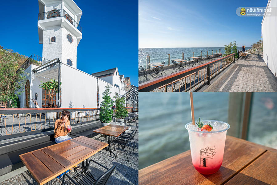 ต่อกันที่ เรดเทมป์ คาเฟ่ คาเฟ่แห่งใหม่ที่ตั้งอยู่ริมทะเลเขาสามมุข ตัวร้านโดดเด่นด้วยประภาคารสีขาวที่ตั้งอยู่ในบริเวณตัวร้าน ตกแต่งด้วยสไตล์เมดิเตอเรเนียนเน้นสีขาวเป็นหลักเพื่อให้ตัดกับสีของท้องฟ้าและน้ำทะเล สำหรับภายในร้านก็ตกแต่งได้อย่างมีสไตล์เน้นเฟอร์นิเจอร์ที่เป็นงานไม้ และมีที่นั่งให้เลือกทั้งโซนอินดอร์ในห้องแอร์และโซนเอ้าท์ดอร์ริมทะเล หากมาถึงแล้วก็ต้องไม่พลาดสั่งเครื่องดื่มมาจิบพร้อมมองวิวทะเลสักแก้ว บอกเลยว่าฟินสุดๆ