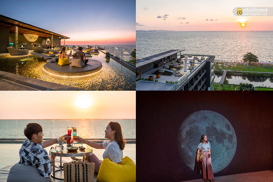 Over The Moon รูฟท็อปบาร์ในที่พัก ANA ANAN Resort & Villas Pattaya เป็นลักษณะ lounge บนชั้นดาดฟ้ามองเห็นวิวทะเลแบบ 180 องศา โอเวอร์เดอะมูนโดดเด่นด้วยที่นั่งเอนกายกลางน้ำ ให้ได้นั่งเอกเขนกชมวิวแสงทไวไลท์แบบฟินๆ เคล้าด้วยเครื่องดื่มสุดชิลล์เข้ากับบรรยากาศ ซึ่งมีเมนูซิกเนเจอร์อย่าง Ana Secret เป็น beertail สูตรลับของอาณาอานันท์ Twilight เป็น mocktail สีสันสดใสน่าลิ้มลอง Deep Fired Cheese Stick เป็นชีสแท่งชุบเกร็ดขนมปังทอดกับซอสค็อกเทล และ Parma Ham & Melon บวกกับวิวอลังการที่อยู่ตรงหน้าแบบนี้จะนั่งยาวๆ ทั้งคืนก็ได้ไม่มีเกี่ยง