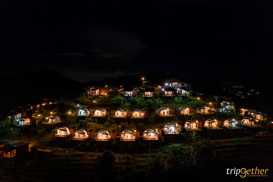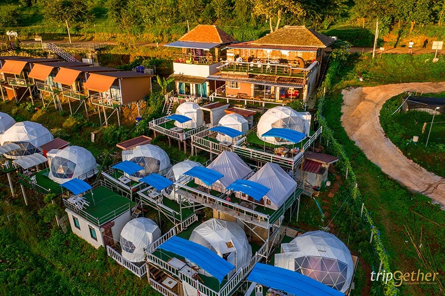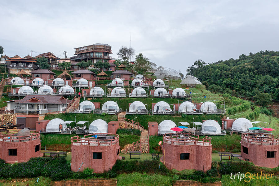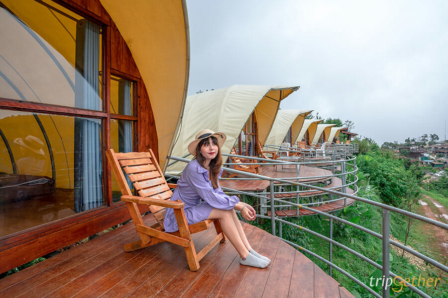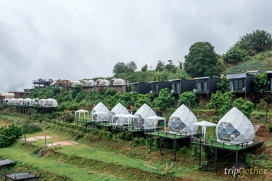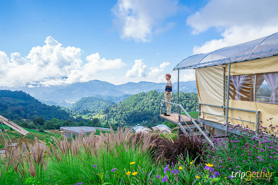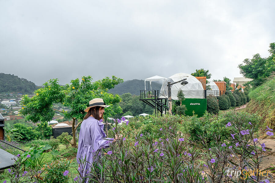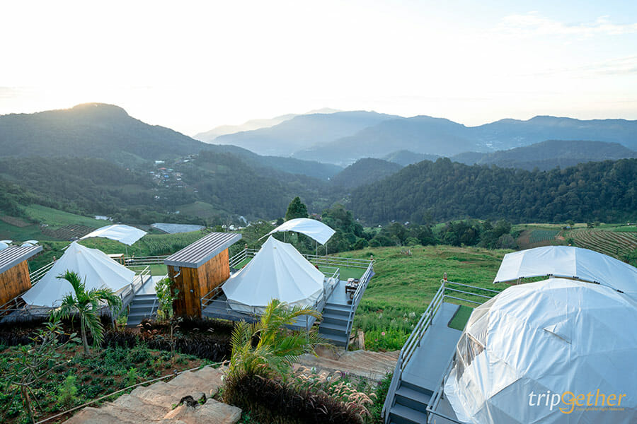 ม่อนดาวเรือง คนรักธรรมชาติและความเป็นส่วนตัวต้องถูกใจสิ่งนี้ เพราะม่อนดาวเรืองเป็นที่พักที่ตั้งอยู่บนเนินเขาส่วนตัว ที่พักแต่ละหลังถูกสร้างลดหลั่นกันลงมาตามแนวเขา ทำให้ห้องพักทุกห้องของที่นี่สามารถมองเห็นวิวทิวทัศน์ด้านหน้าที่พักได้แบบไกลสุดสาย ห้องพักของม่อนดาวเรืองมีให้เลือกทั้งแบบบ้านกล่อง สไตล์โมเดิร์นอยู่โซนบนสุดที่ทำให้วิวที่สวยมากๆ ที่พักแบบเต็นท์โดมและเต็นท์กระโจมก็สวยไม่แพ้กัน ใครอยากได้บรรยากาศแบบชิลล์ๆ นอนเต็นท์ ต้องถูกใจแน่นอนเพราะด้านในกว้างขวางมาก แถมมีสิ่งอำนวยความสะดวกครบครัน มีห้องน้ำส่วนตัวอยู่ด้านข้างและมีระเบียงกว้างให้พักผ่อน หรือสั่งหมูกระทะมากินแบบฟินๆ ได้อีกด้วย