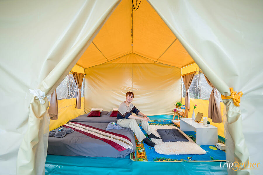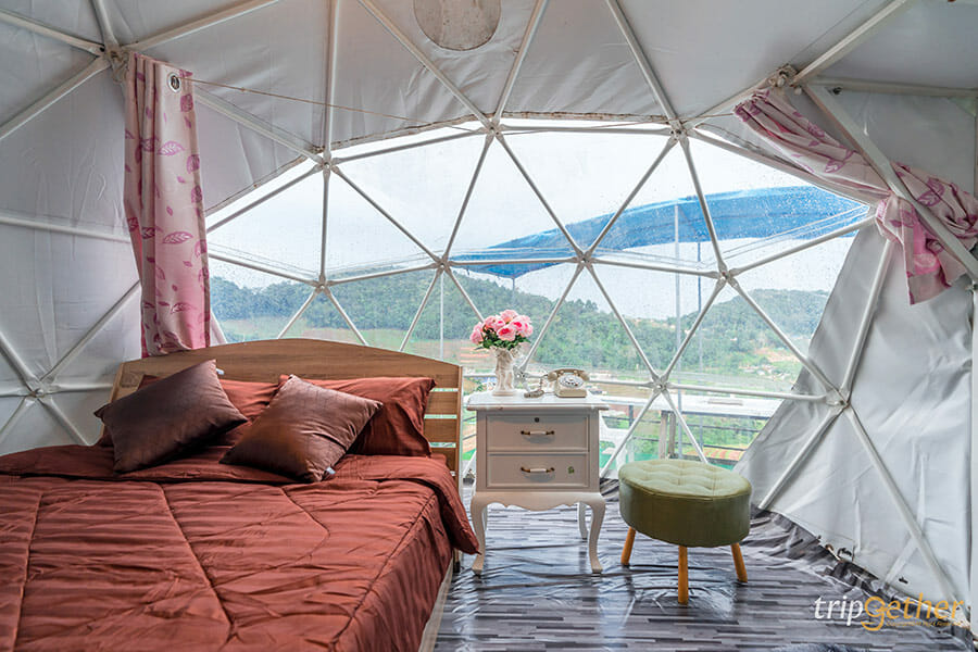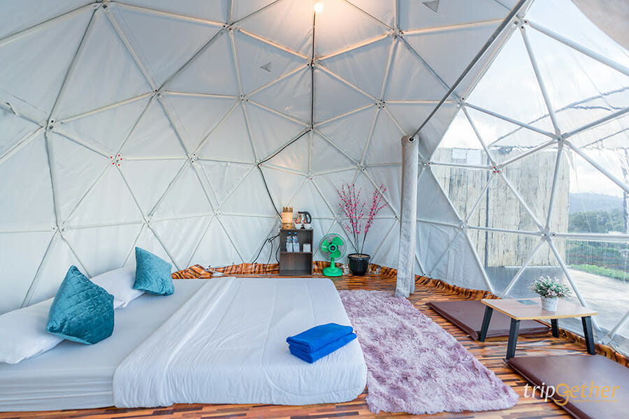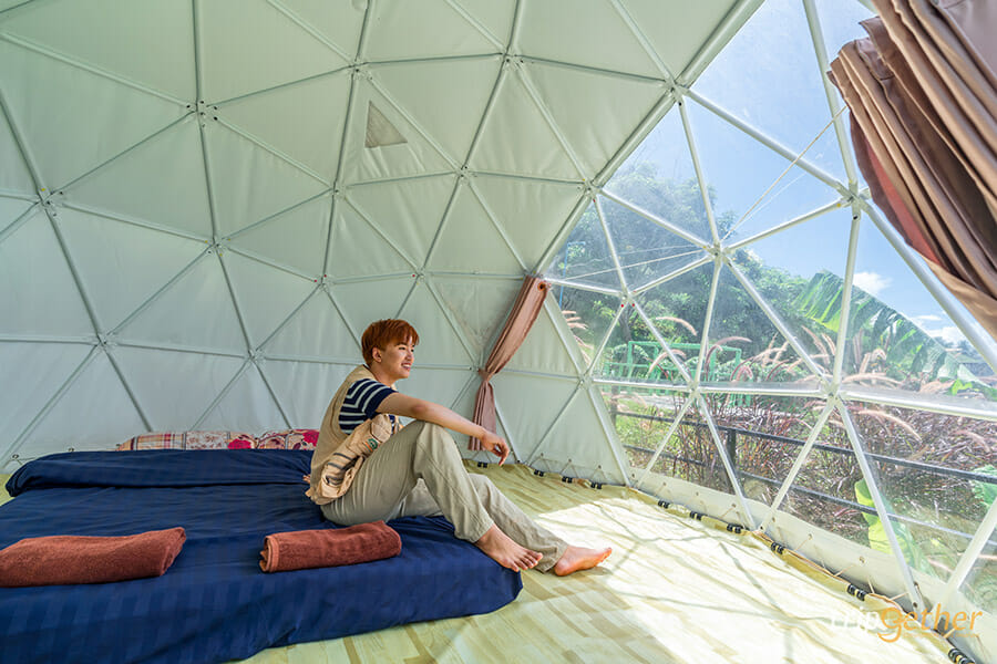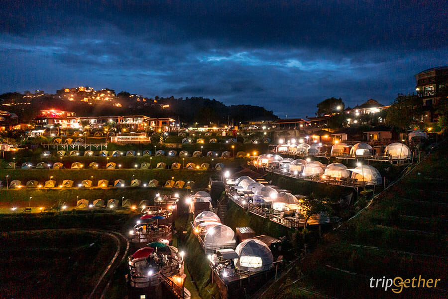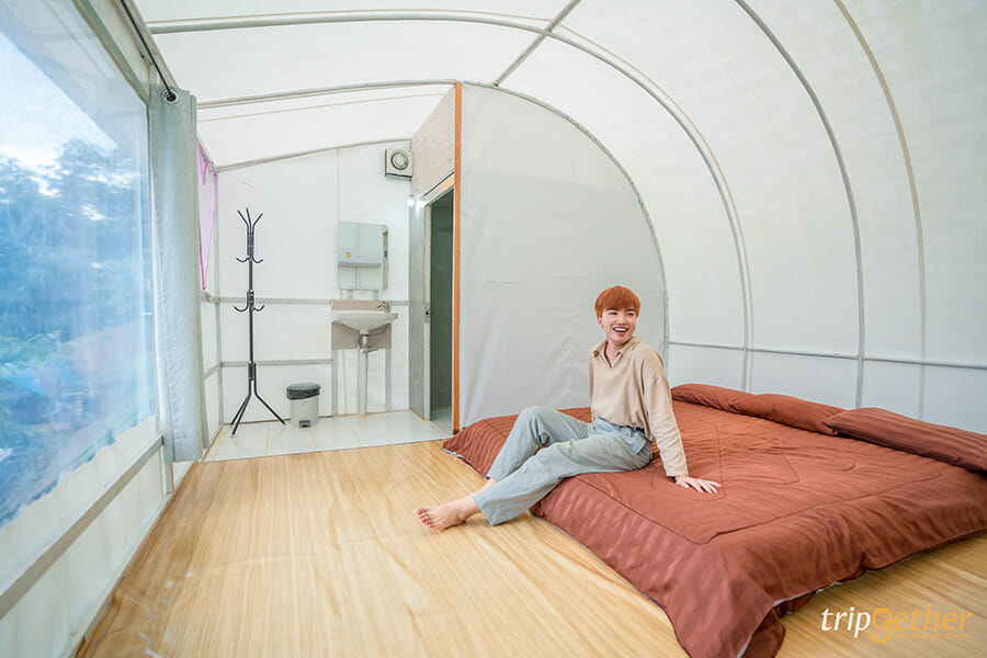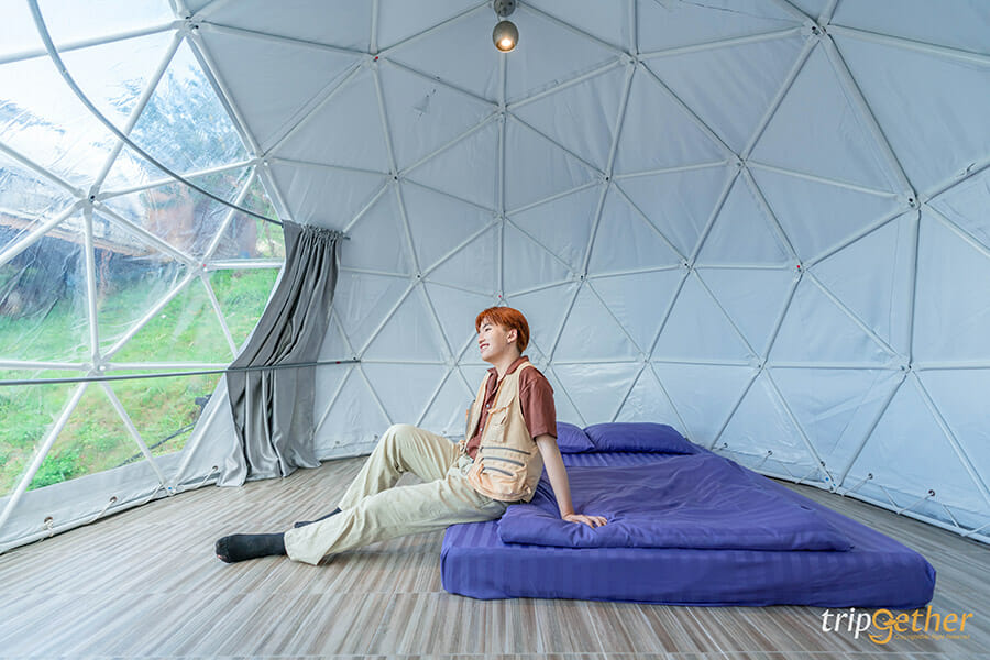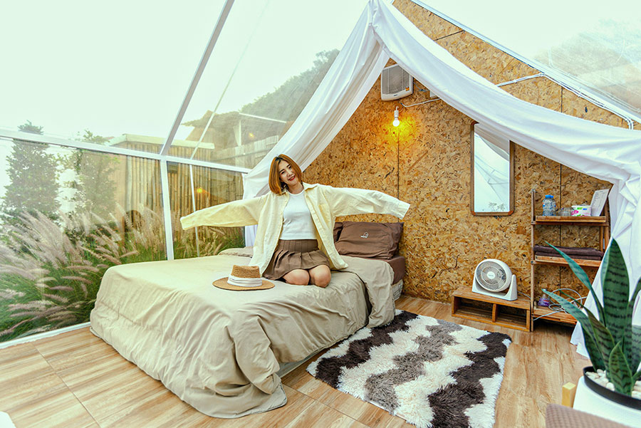 ม่อนดาวเรือง คนรักธรรมชาติและความเป็นส่วนตัวต้องถูกใจสิ่งนี้ เพราะม่อนดาวเรืองเป็นที่พักที่ตั้งอยู่บนเนินเขาส่วนตัว ที่พักแต่ละหลังถูกสร้างลดหลั่นกันลงมาตามแนวเขา ทำให้ห้องพักทุกห้องของที่นี่สามารถมองเห็นวิวทิวทัศน์ด้านหน้าที่พักได้แบบไกลสุดสาย ห้องพักของม่อนดาวเรืองมีให้เลือกทั้งแบบบ้านกล่อง สไตล์โมเดิร์นอยู่โซนบนสุดที่ทำให้วิวที่สวยมากๆ ที่พักแบบเต็นท์โดมและเต็นท์กระโจมก็สวยไม่แพ้กัน ใครอยากได้บรรยากาศแบบชิลล์ๆ นอนเต็นท์ ต้องถูกใจแน่นอนเพราะด้านในกว้างขวางมาก แถมมีสิ่งอำนวยความสะดวกครบครัน มีห้องน้ำส่วนตัวอยู่ด้านข้างและมีระเบียงกว้างให้พักผ่อน หรือสั่งหมูกระทะมากินแบบฟินๆ ได้อีกด้วย