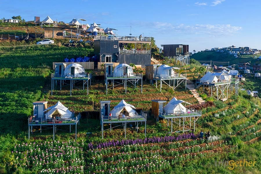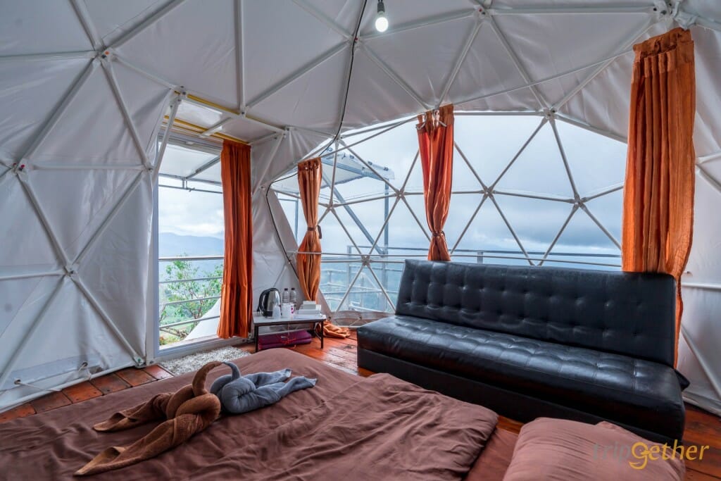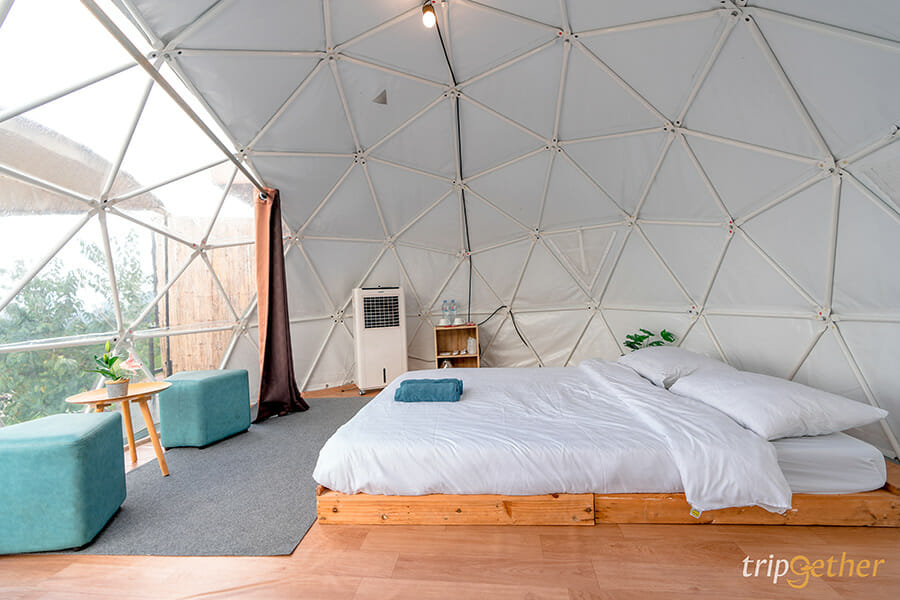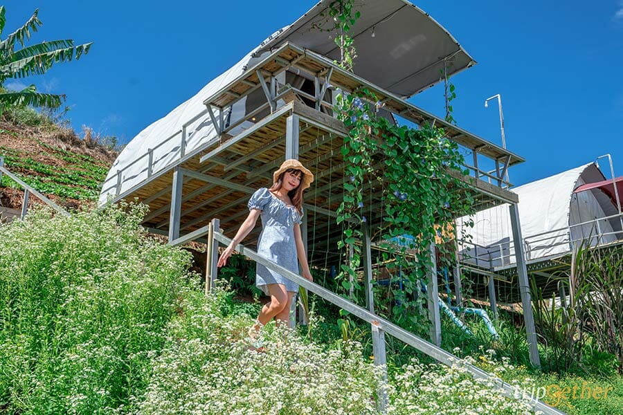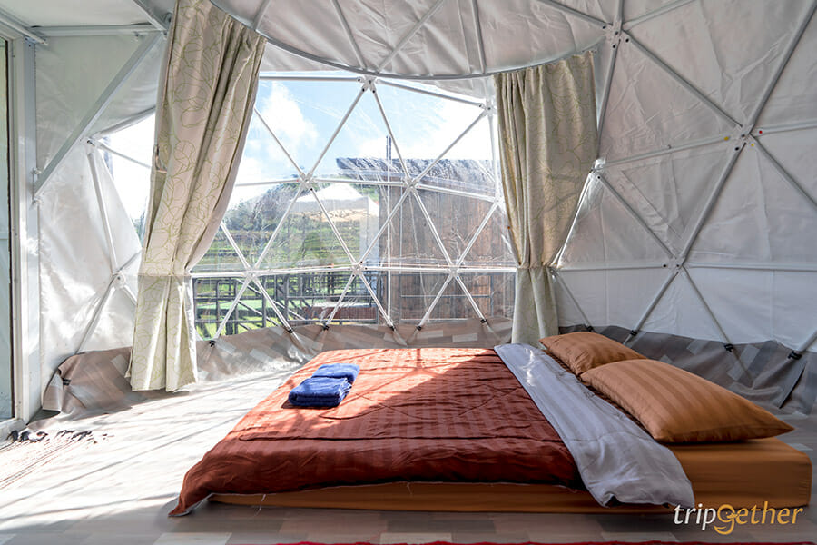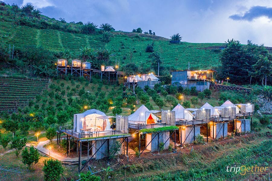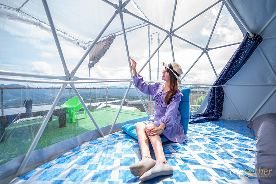 ม่อนดาวเรือง คนรักธรรมชาติและความเป็นส่วนตัวต้องถูกใจสิ่งนี้ เพราะม่อนดาวเรืองเป็นที่พักที่ตั้งอยู่บนเนินเขาส่วนตัว ที่พักแต่ละหลังถูกสร้างลดหลั่นกันลงมาตามแนวเขา ทำให้ห้องพักทุกห้องของที่นี่สามารถมองเห็นวิวทิวทัศน์ด้านหน้าที่พักได้แบบไกลสุดสาย ห้องพักของม่อนดาวเรืองมีให้เลือกทั้งแบบบ้านกล่อง สไตล์โมเดิร์นอยู่โซนบนสุดที่ทำให้วิวที่สวยมากๆ ที่พักแบบเต็นท์โดมและเต็นท์กระโจมก็สวยไม่แพ้กัน ใครอยากได้บรรยากาศแบบชิลล์ๆ นอนเต็นท์ ต้องถูกใจแน่นอนเพราะด้านในกว้างขวางมาก แถมมีสิ่งอำนวยความสะดวกครบครัน มีห้องน้ำส่วนตัวอยู่ด้านข้างและมีระเบียงกว้างให้พักผ่อน หรือสั่งหมูกระทะมากินแบบฟินๆ ได้อีกด้วย