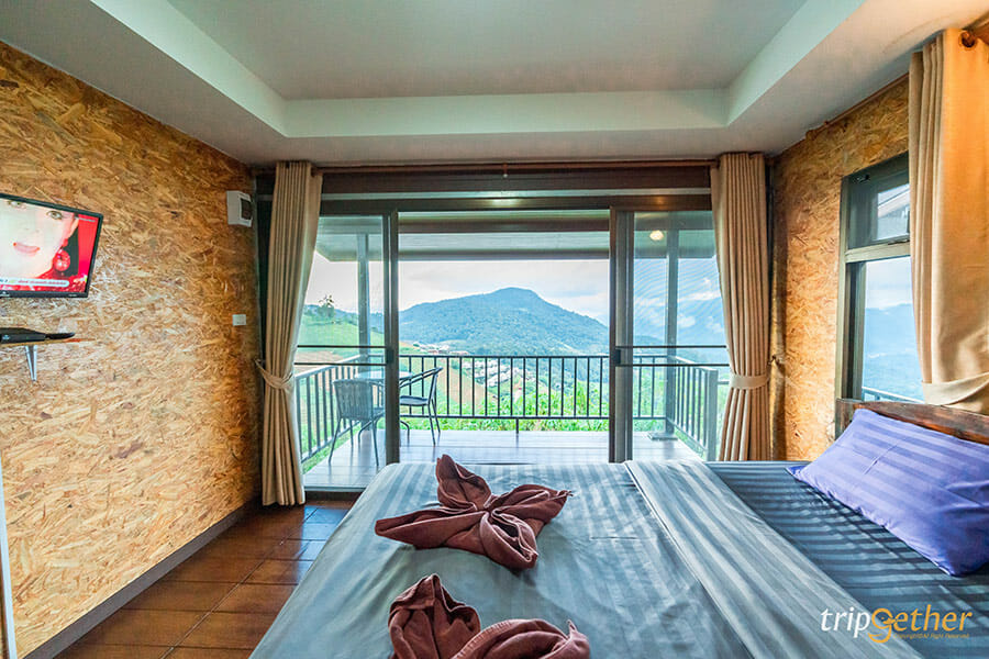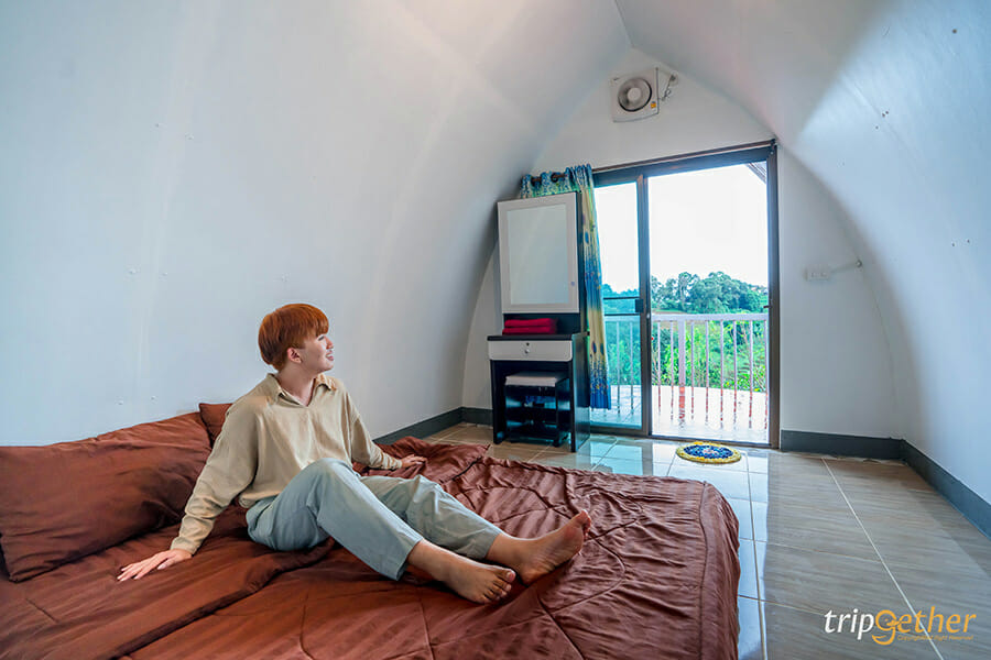 ม่อนซาน โฮมสเตย์ ที่พักบรรยากาศดีที่สวยทั้งวิวและดีไซน์ของห้องพัก ตัวห้องพักของม่อนซาน โฮมสเตย์สามารถมองเห็นวิวของภูเขาด้านหน้าได้จากระเบียงห้องพักของทุกห้อง และห้องพักใหม่ล่าสุดของที่นี่เป็นเต็นท์ทรงหยดน้ำ ดีไซน์สะดุดตามีหน้าต่างใสที่สามารถนั่งมองวิวได้จากภายในเต็นท์ หรือจะเป็นบ้านกล่องดำ บ้านพักสไตล์โมเดิร์นที่มีกระจกใสบานใหญ่ให้ดูวิวแบบพาโนราม่ากันไปเลย นอกจากนี้บริเวณส่วนกลางของม่อนซาน โฮมสเตย์ยังมีดาดฟ้าให้นั่งเล่นหรือสั่งอาหารขึ้นมากินพร้อมกับมองวิวแบบ 360 องศา ฟินกันสุดๆ แน่นอน
