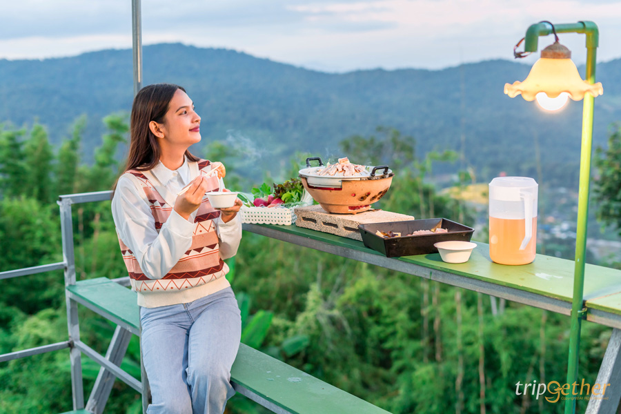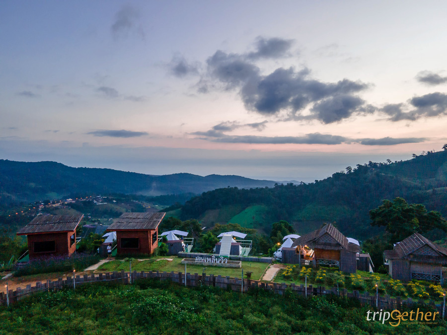 ม่อนเพลินวิว ที่พักวิวภูเขาสุดกรีนที่สามารถชมวิวธรรมชาติได้แบบพาโนราม่า มองเห็นท้องฟ้าแบบกว้างๆ ตัดกับภูเขาอย่างสวยงามสมชื่อม่อนเพลินวิว ห้องพักมีให้เลือก 2 แบบ คือ บ้านไม้สไตล์โมเดิร์นและเต็นท์กระโจม ทั้งสองแบบมาพร้อมสิ่งอำนวยความสะดวกครบ แอบกระซิบว่ากลางเดือนมิถุนายน 2565 นี้ ที่พักแบบเต็นท์กระโจมจะมีอ่างด้านหน้าเต็นท์ให้แช่น้ำตีฟองมองวิวกันด้วยนะ ที่สำคัญทุกหลังมีพื้นที่แบบส่วนตัวให้คุณได้พักผ่อนแบบสงบๆ ไม่แออัดแน่นอน สำหรับอาหารมื้อเช้ามีครบเซ็ต ทั้งขนมปัง ข้าวต้ม และเครื่องดื่มร้อนๆ ส่วนมื้อเย็นมีให้เลือกสั่งทั้งอาหารตามสั่ง และหมูกระทะแบบเซ็ต เรียกได้ว่าไม่ต้องกลัวหิวกันเลย นอกจากนั้นบริเวณที่พักยังมีมุมถ่ายรูปเพียบไม่ว่าจะสวนดอกไม้ บันไดสวรรค์ บอกเลยใครอยากหนีความวุ่นวายมาดื่มด่ำธรรมชาติแบบชิลล์ๆ แนะนำที่ม่อนเพลินวิว เพราะที่นี่เป็นทั้งที่เที่ยว ที่กิน ที่พัก ในที่เดียว