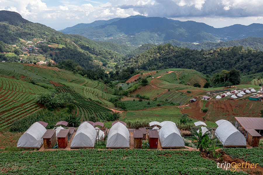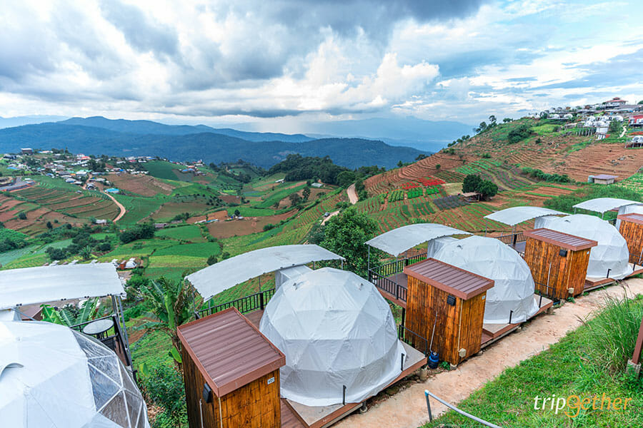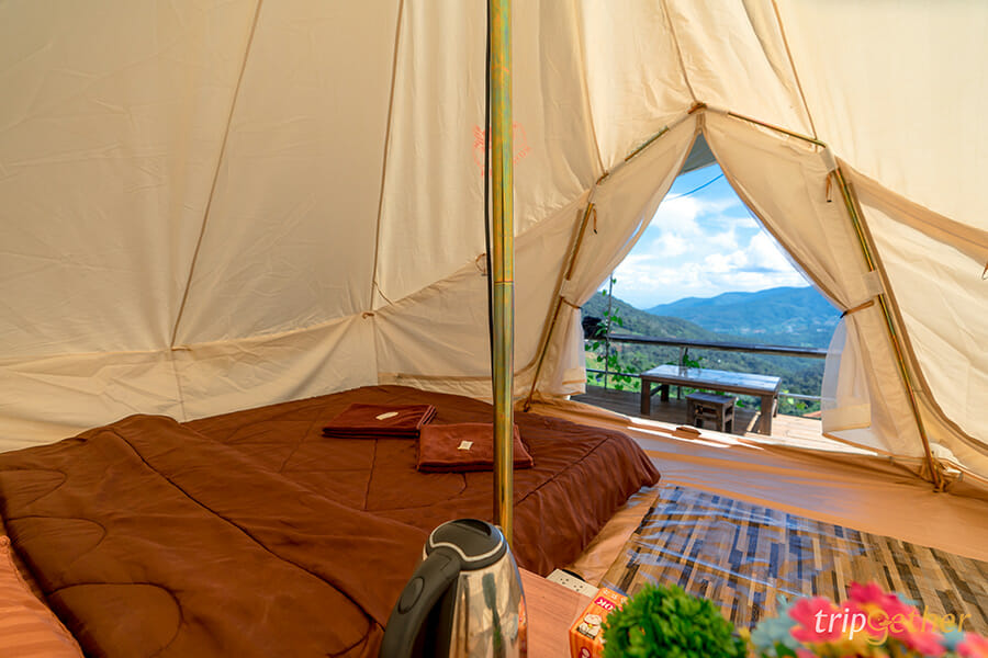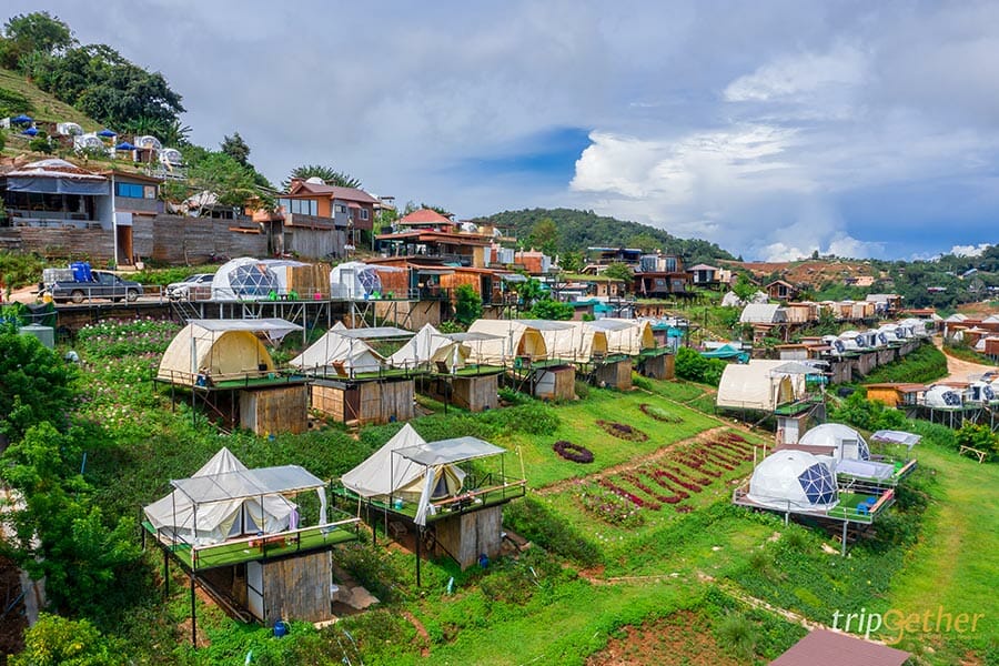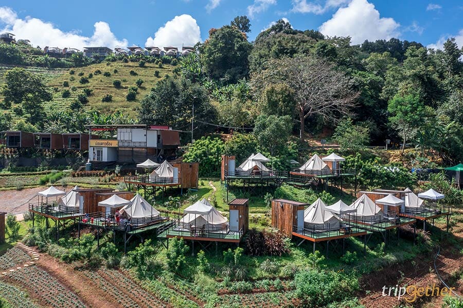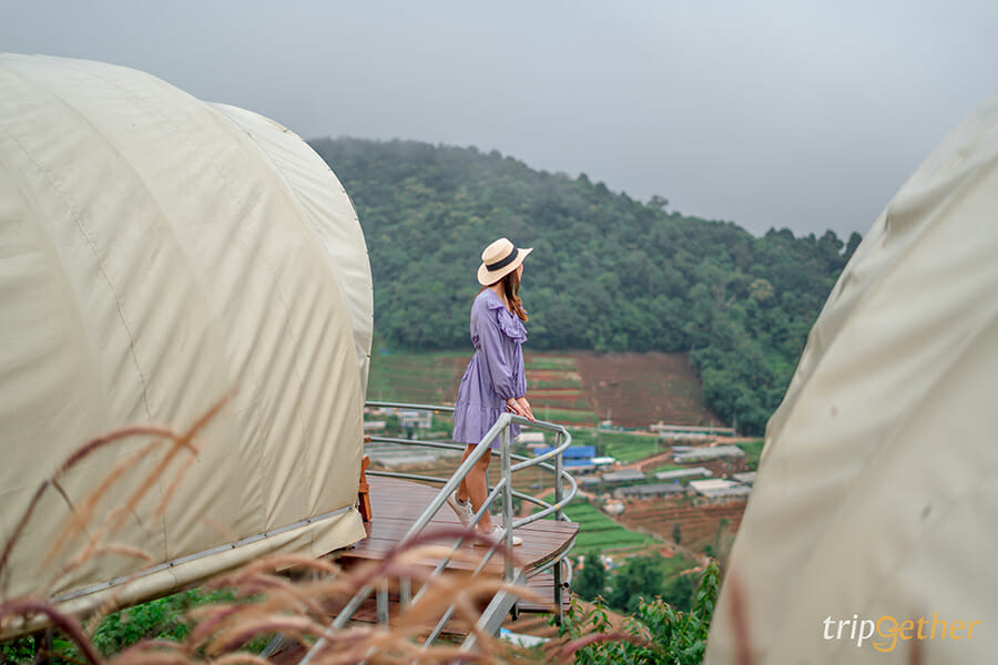 ม่อนจาวดอย ที่พักวิวสวยบรรยากาศไม่แพ้ที่ไหนบนม่อนแจ่ม ห้องพักก็มีให้เลือกหลากหลายแบบไม่ว่าจะเป็นห้องพักแบบบ้านแฝดใครมากันหลายๆ คนก็สามารถเหมาหลังได้เลย หรือจะเป็นเต็นท์ VIP สไตล์แคมป์ปิ้งมีห้องน้ำในตัว ใครสายลุยๆ ก็มีเป็นเต็นท์สนามให้เลือกพักด้วย หรือสำหรับใครที่มากับครอบครัวหรือกลุ่มเพื่อนก็สามารถเลือกพักแบบเต็นท์ Family ที่พักได้สูงสุดถึง 6 คน ได้เช่นกัน ขอบอกเลยว่าวิวของห้องพักทุกห้องพักดีมากๆ นอกจากนี้ม่อนจาวดอยยังอยู่ใกล้กับม่อนแจ่มอีกด้วย สามารถเดินไปได้เลย จากที่พักเพียงแค่ 200 – 300 เมตรเท่านั้นเอง ใครอยากเปลี่ยนบรรยากาศการพักผ่อนเป็นที่พักวิวดีๆ สักคืนที่นี่เหมาะมากๆ เลย