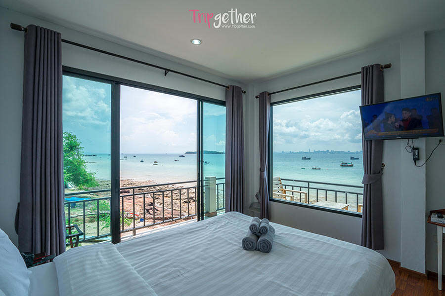 บ้านเรียงทะเล เกาะล้าน ที่พักเล็กๆ ริมทะเลที่สไตล์บ้านๆ ที่ตกแต่งด้วยสีสันสดใส มีบ้านพักทั้งแบบชิดติดริมทะเลให้บริการ และยังมีบ้านพักด้านในที่มาพร้อมกับสิ่งอำนวยความสะดกวอย่างครบครัน ส่วนพื้นที่ด้านบนชั้นดาดฟ้ายังเป็นมุมนั่งพักผ่อนชิลล์ๆ ที่คุณสามารถมานั่งรับเย็นๆ ได้แบบตลอดเวลา