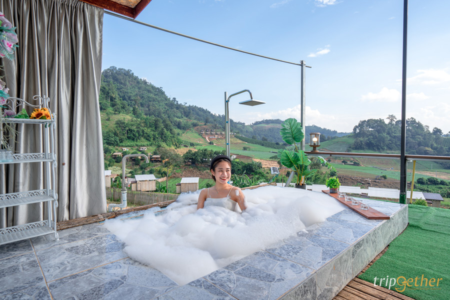 ม่อนเหนือโฮมสเตย์ ที่พักสุดหรูที่ตั้งอยู่ในม่อนแจ่ม มาพร้อมกับความหลากหลายของรูปแบบห้องพัก ที่มีทั้งบ้านยาหยี ที่ตกแต่งด้วยสไตล์โมเดิร์นสุดเรียบหรู มีกระจกใสบานใหญ่ที่บอกเลยว่าสามารถมองเห็นวิวยอดดอยและสายหมอกได้จากบนเตียง อีกทั้งยังมีอ่างอาบน้ำแบบเอาท์ดอร์ที่อยู่ระเบียงด้านหน้าห้องพักให้ได้แช่น้ำอุ่นๆ มองวิวสวยๆ หรือจะถ่ายรูปทำคอนเทนต์ก็ปังไม่แพ้ใคร หรือจะเป็นห้องพักแบบห้องโดมอ่าง ที่เป็นเต็นท์โดมแบบมีอ่างให้แช่ บอกเลยว่าถ้าใครอยากมานอนค้างบนดอยฉ่ำๆ แล้วได้รูปกลับไปอัปโซเชียล ต้องมาเช็คอินที่นี่เลย