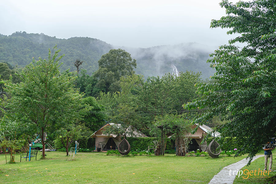 The Garden Tent&House ที่พักสุดกรีนที่ตั้งอยู่ใกล้กับอุทยานแห่งชาติดอยอินทนนท์ ดอยยอดฮิตอีกแห่งหนึ่งของเชียงใหม่ ด้วยความที่ตั้งอยู่บนพื้นที่สูงจึงทำให้ที่นี่มีอากาศที่เย็นอยู่ตลอดทั้งปีและมีหมอกมาโอบกอดยอดเขาอยู่ทุกเช้า ห้องพักของที่นี่มีให้เลือกอยู่ 2 แบบด้วยกัน คือ ห้องพักแบบเต็นท์ที่มาพร้อมกับพื้นที่กว้างขวางและการตกแต่งสุดชิลล์ มีเครื่องอำนวยความสะดวกครบครัน และห้องพักแบบบ้านพักที่มีเฟอร์นิเจอร์ครบ นอกจากนี้ในพื้นที่ของที่พักยังเป็นสนามหญ้าโล่งกว้างที่มองเห็นยอดดอยที่มีน้ำตกไหลลงมาอยู่อย่างใกล้ชิดอีกด้วย