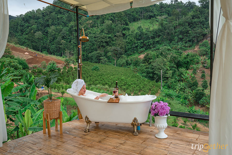 The Campian ที่พักสุดชิลล์ใกล้ชิดธรรมชาติที่มาพร้อมกับที่พักแบบแคมป์ปิ้งที่จัดเต็มความหรูหรา จากพื้นที่ของที่นี่สามารถมองเห็นดอยหลวงเชียงดาวได้แบบเต็มๆ พร้อมกับกลุ่มหมอกที่ลอยเหนือพื้นดินสุดเฟรช ห้องพักของที่นี่ม่ให้เลือกทั้งแบบบ้านสุดสะดวกสะบาย เต็นท์โดมใสชิคๆ ที่มองเห็นวิวได้แบบชัดเจน และพูลวิลล่าเอาใจสายคอนเทนต์ มาพักที่นี่บอกเลยว่าได้ดื่มด่ำกับความสดชื่นและธรรมชาติได้แบบเต็มร้อยแน่นอน