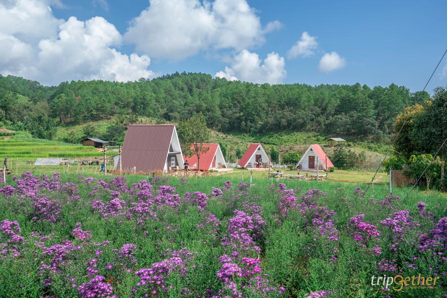 บ้านปลายดอย – อินทนนท์ ที่พักสุดน่ารักที่มาพร้อมกับสไตล์แบบฟาร์มสเตย์ ห้อมล้อมไปด้วยภูเขาและสวนดอกไม้ ไฮไลท์ของที่นี่คือมีบ้านพักเพียง 5 หลังเท่านั้น โดยแบ่งออกเป็น บ้านหลังใหญ่ และบ้านหลังเล็ก บรรยากาศของที่นี่จึงเต็มไปด้วยความสงบ เรียบง่าย อยู่ท่ามกลางอ้อมกอดของธรรชาติ เมื่อมองดูบ้านพักที่อยู่กลางทุ่งดอกไม้ และมีแนวภูเขาเป็นฉากหลัง บอกเลยว่าเหมือนอยู่ต่างประเทศมากๆ และในช่วงเช้าๆ อากาศก็จะเย็นสบายๆ เหมาะกับการตื่นเช้ามาสูดอากาศเย็นๆ เป็นที่สุด
