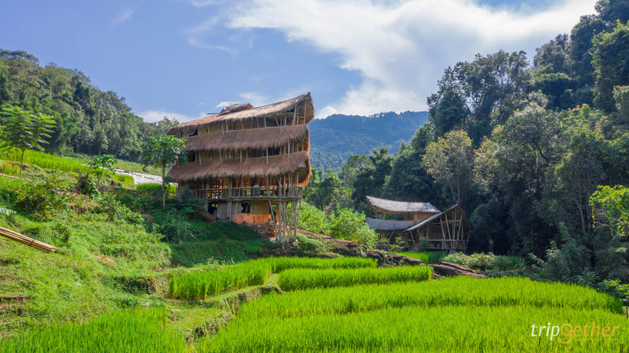 Giant Bamboo Hut บ้านไม้ไผ่ยักษ์ ที่พักฟีลดีท่ามกลางท้องทุ่งนาและขุนเขาสุดกรีน พร้อมกับมีลำธารสายเล็กๆ ไหลผ่านบริเวณที่พักอีกด้วย บ้านไม้ไผ่ยักษ์ตั้งอยู่ที่บ้านแม่กลางหลวง ไฮไลท์คือที่พักที่ใช้วัสดุจากธรรมชาติอย่างไม้ไผ่แบบ 100% บอกเลยว่ามาพักที่นี่จะได้สัมผัสกับความเป็นธรรมชาติแบบเต็มร้อย สูดกลิ่นของของท้องทุ่งนา และสัมผัสลมเบาๆ ของป่าไม้ เอาเป็นว่าใครเป็นสายกรีน อยากหาที่สงบๆ เยียวยาจิตใจ ต้องมานอนที่นี่สักคืนแล้ว