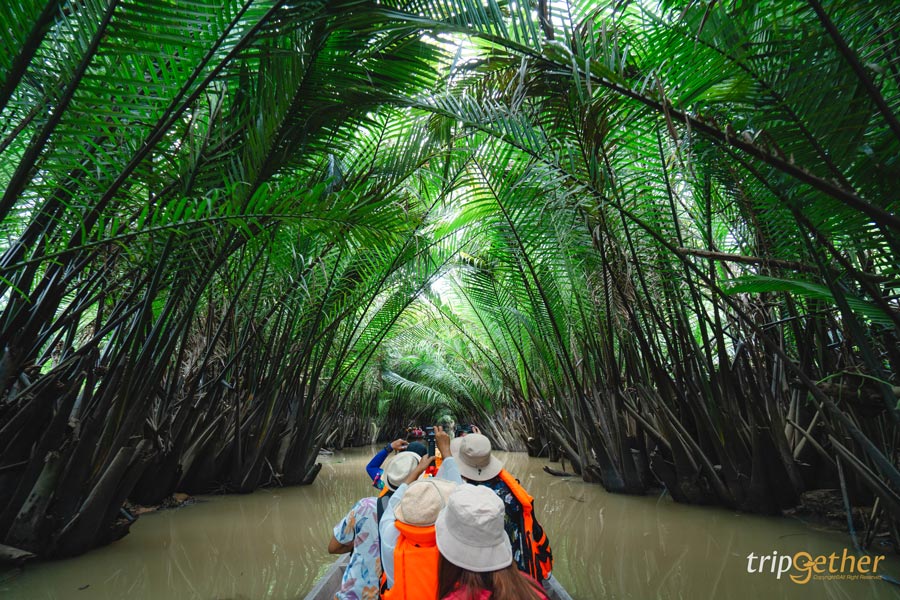 อุโมงค์ต้นจาก เป็นทั้งที่เที่ยวและแหล่งศึกษาธรรมชาติสุดอันซีนของสุราษฎร์ธานี ทุกคนจะได้ล่องเรือช้าๆ ชมความงามของต้นจากที่แผ่กิ่งก้านโค้งลงหาลำน้ำจนกลายเป็นอุโมงค์สุดอลัง เรียกได้ว่าเป็นภาพธรรมชาติที่อุดมสมบูรณ์และร่มรื่นมาก บวกกับได้ล่องเรือชิลล์ๆ ดื่มด่ำบรรยากาศสบายๆ อีกทั้งยังได้ชมวิถีชีวิตริมสองฝั่งน้ำ ใครอยากมาสัมผัสประสบการณ์แบบนี้สามารถมาขึ้นเรือได้ที่ท่าน้ำวัดบางใบไม้