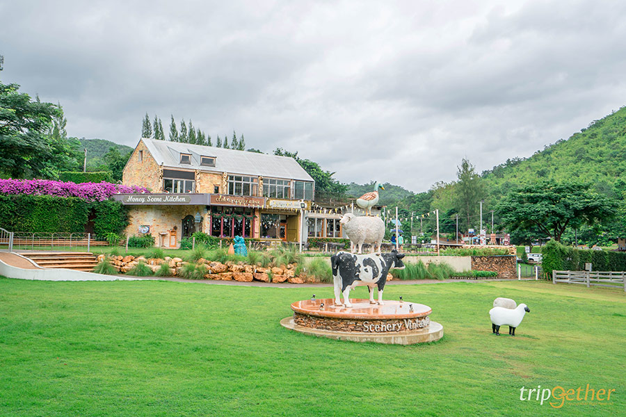 เดอะ ซีนเนอรี วินเทจ ฟาร์ม ที่เที่ยวใกล้กรุงเทพฯ ฟีลดีที่โอบล้อมไปด้วยความกรีนของธรรมชาติ โดยจำลองเอาหมู่บ้านชาวไร่สไตล์ English Country อาคารแต่ละหลังออกแบบโดยใช้รูปแบบสถาปัตยกรรมสไตล์หมู่บ้านในชนบทของอังกฤษ กิจกรรมของที่นี่ก็จัดเต็มแบบสุดๆ ไม่ว่าจะเป้นการให้อาหารน้องแกะท่ามกลางทุ่งหญ้าสีเขียว ขี่ม้าเท่ๆ ยิงธนู พร้อมกับชิมเมนูที่เป็นไฮไลท์นั่นก็คือไอศกรีมจากนมแกะ เหมาะกับการพาครอบครัวและกลุ่มเพื่อนมาพักผ่อนใช้เวลาสบายๆ ร่วมกันในวันหยุด