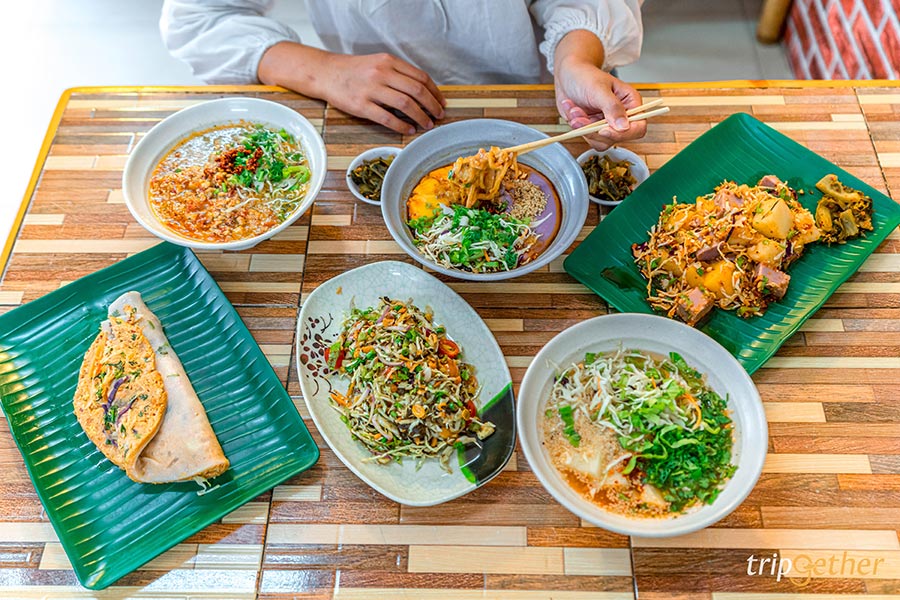 ข้าวแรมฟืนป้ายอด ร้านอาหารไทใหญ่ที่จัดเต็มรสชาติต้นตำรับของอาหารพื้นเมืองดั้งเดิมผสมผสานกับความเป็นสมัยใหม่เพื่อตอบโจทย์ให้คนรุ่นใหม่ได้ลิ้มลอง เมนูที่มาแล้วต้องสั่งเลยก็คือ ข้าวแรมฟืนจิ้มสามสีและข้ามแรมฟืนอุ่น ซึ่งจะมีรสชาติและรสสัมผัสเฉพาะตัวทั้งความนุ่ม เนียน รับรองเลยว่าได้ไปลองแล้วจะต้องติดใจ