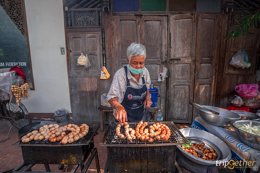 ไส้กรอกข้าวป้าใจ๋ หนึ่งในร้านอร่อยเชียงใหม่ที่เปิดขายมายาวนานกว่า 40 ปี ในแต่ละวันร้านของป้าใจ๋จะมีลูกค้ามาอย่างไม่ขาดสาย ด้วยความพิเศษที่ป้าใจ๋ลงมือและคิดค้นสูตรขึ้นเอง อีกทั้งยังพิถีพิถันแบบสุดๆ ทั้งอร่อย ครบเครื่อง แถมยังหอมกลิ่นย่างร้อนๆ ซึ่งรสชาติมีอยู่ 2 รส คือรสเปรี้ยวที่เป็นหมูล้วน และรสดั้งเดิมที่เป็นข้าวแน่นๆ บอกเลยว่ากินร้อนๆ คู่กับผักและพริก ฟินไม่ไหว