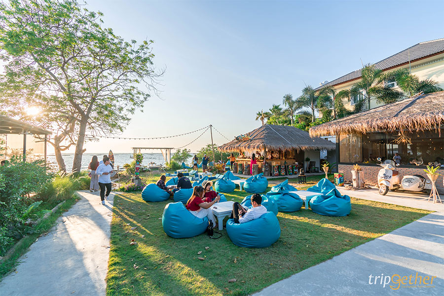 เคบ เพียร์ คาเฟ่ คาเฟ่บางเสร่ที่ยื่นลงไปในทะเลสีคราม คาเฟ่แห่งนี้ตั้งอยู่ในที่พักสุดหรูสไตล์บาหลีอย่าง Kept Bangsaray ตัวคาเฟ่ตกแต่งด้วยสไตล์ทรอปิคอลที่ให้อารมณ์เหมือนท่าเทียบเรือบนหมู่เกาะมัลดีฟส์ ใช้โทนสีขาวน้ำเงินและขาวเป็นหลัก มีมุมถ่ายรูปเก๋ๆ อย่างมุมตาข่ายที่ยื่นลงไปในทะเล สามารถชมวิวพระอาทิตย์ตกได้อย่างโรแมนติกสุดๆ นอกจากนี้ทางร้านยังมีบริการเสิร์ฟทั้งอาหาร ของว่างทานเล่น ขนมหวาน และเครื่องดื่มอีกด้วยนะ
