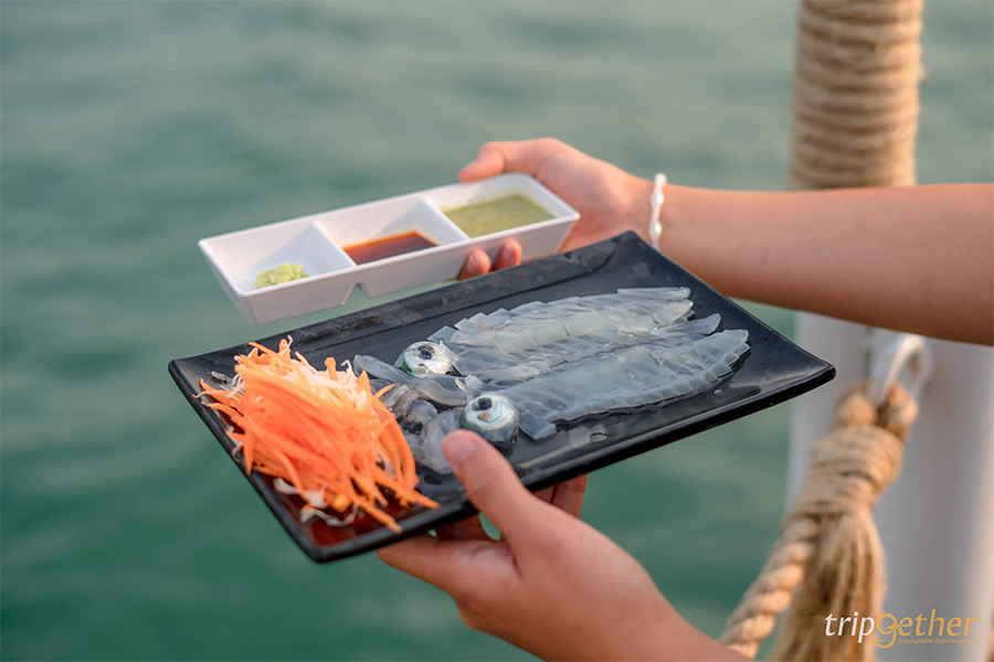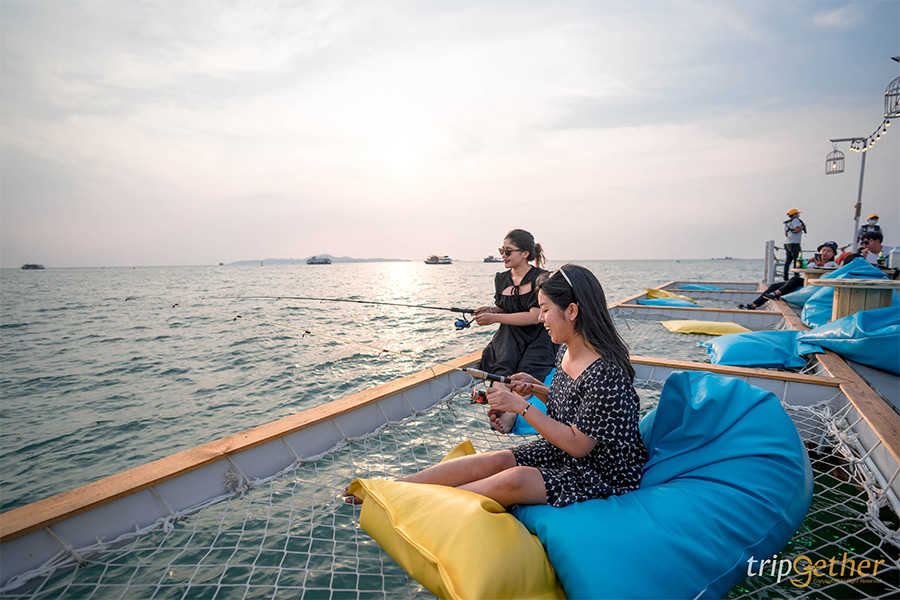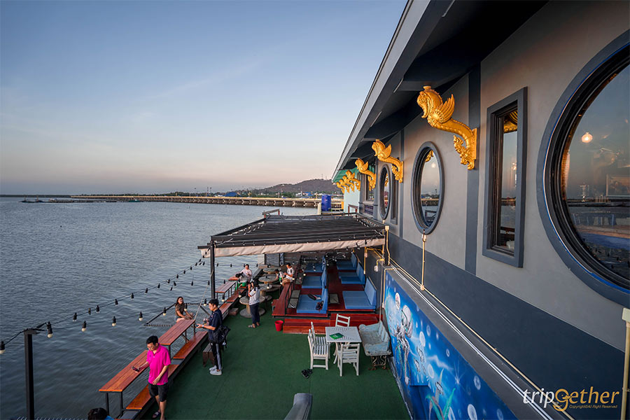 Tappia Floating Cafe Pattaya คาเฟ่ตกหมึกพัทยาตั้งอยู่บนเรือขนาดใหญ่กลางทะเล ซึ่งทางร้านมีบริการสปีดโบ๊ทที่ท่าเรือเร็วที่ 1 ของท่าเรือแหลมบาลีฮายรอรับ – ส่งลูกค้าถึงตัวคาเฟ่ โดยรอบเรือแรกจะเริ่มที่เวลา 16.00 น. ภายในเรือมีขนาดใหญ่กว้างขวาง มีสองชั้น ตกแต่งในสไตล์ทรอปิคอลสุดชิค ในส่วนของที่นั่งก็จะมีหลายโซนให้เลือกนั่งได้แบบไม่แออัด มีดนตรีสดให้ฟังเพลินๆ สามารถตกหมึกได้ฟรี ถ้าตกได้ก็จะมีบริการทำซาซิมิให้ หรือถ้าใครตกไม่ได้ก็สามารถสั่งอาหารรับประทานได้ เมนูแนะนำคือหมึกทอดกระเทียม, ข้าวผัดฮาวาย, ต้มยำกุ้งมะพร้าวอ่อน และหมึกซาซิมิ นอกจากนี้ยังมีเมนูของหวานและเครื่องดื่มอย่าง ช็อกโกแลตลาวา, Balihai Pier, Tappia Paradise และ Lom Talay รับรองว่าเด็ดทุกเมนู