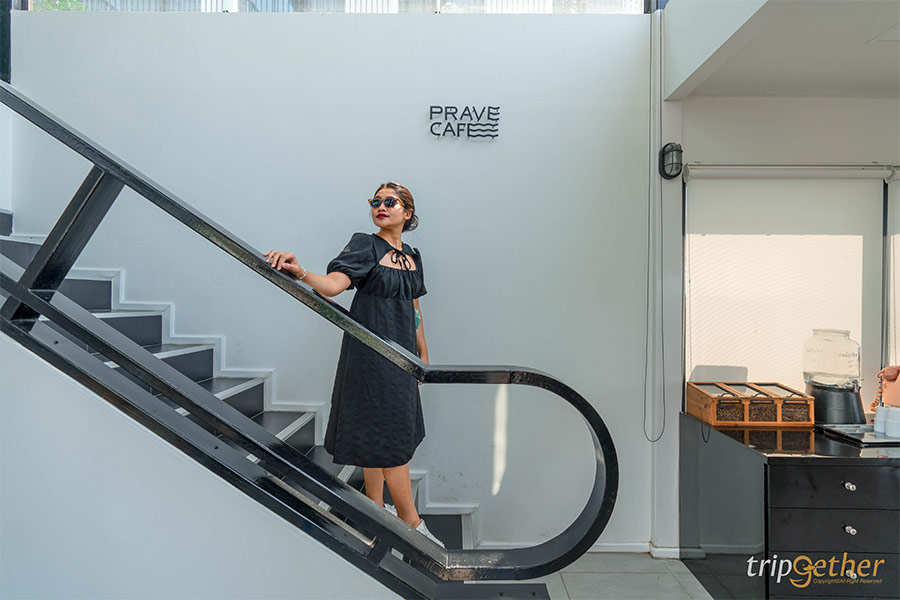 Prave Cafe คาเฟ่ศรีราชา วิวทะเล บรรยากาศสุดชิลล์ มีทั้งโซน Indoor ในห้องแอร์ และโซน Outdoor ให้รับลมทะเลแบบชิลล์ๆ ร้านตั้งอยู่ตรงข้ามโรงพยาบาลสมิติเวชศรีราชา ตกแต่งในสไตล์มินิมอลเท่ๆ เน้นโทนขาว ดำ เทา เป็นหลัก มีมุมถ่ายรูปเยอะมาก สายถ่ายรูปต้องกดเลิฟ เมนูแนะนำคือ Espresso Matcha, Rose Cheese, Drip Coffee ที่มีเมล็ดกาแฟให้เลือกถึง 30 ชนิด และขนมเบเกอรี่อบสดใหม่อย่าง Blue Prave Cake เค้กสีฟ้ามีครีมชีสนุ่มละมุนลิ้น ใครมองหาคาเฟ่ศรีราชาเท่ๆ ติดทะเลต้องแวะ!