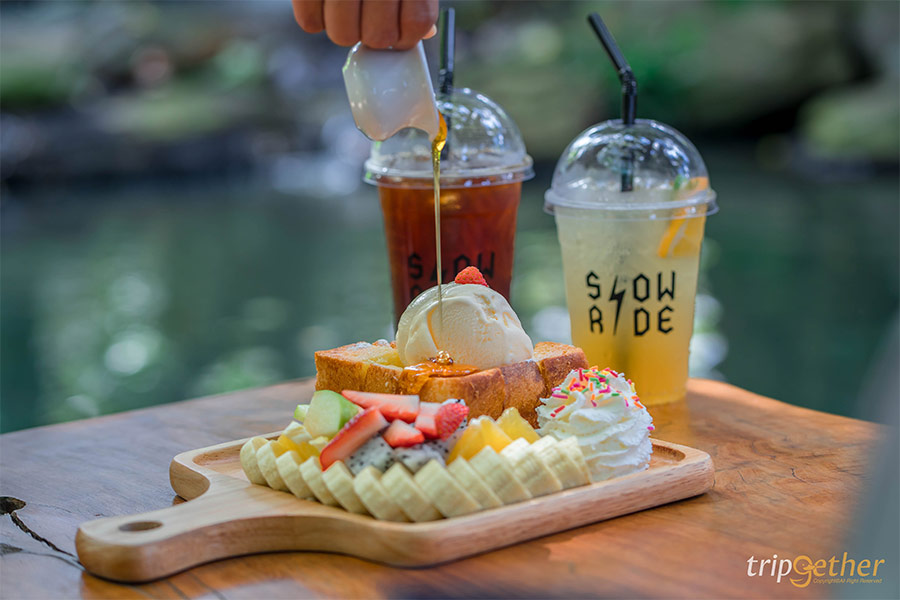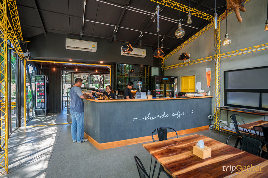 Slow Ride Coffee & Cafe คาเฟ่พัทยาที่เหมือนป่าเล็กในเมืองใหญ่ซ่อนตัวอยู่ท่ามกลางป่าไม้เขียวชอุ่ม บรรยากาศร่มรื่นท่ามกลางสวนสวย ตัวร้านตกแต่งสไตล์โมเดิร์นลอฟท์ มีทั้งที่นั่งอินดอร์ เอ้าท์ดอร์ Meeting zone และโซนที่กำลังจะเปิดใหม่คือ Wine do โซนเอ้าท์ดอร์จะมีธารน้ำเล็กๆ พร้อมฝูงปลาแหวกว่ายให้ได้สัมผัสความสดชื่นกันอย่างเพลิดเพลิน ใครมองหาคาเฟ่นั่งชิลล์พัทยาอยู่ต้องเซฟเก็บไว้ในลิสต์เลย