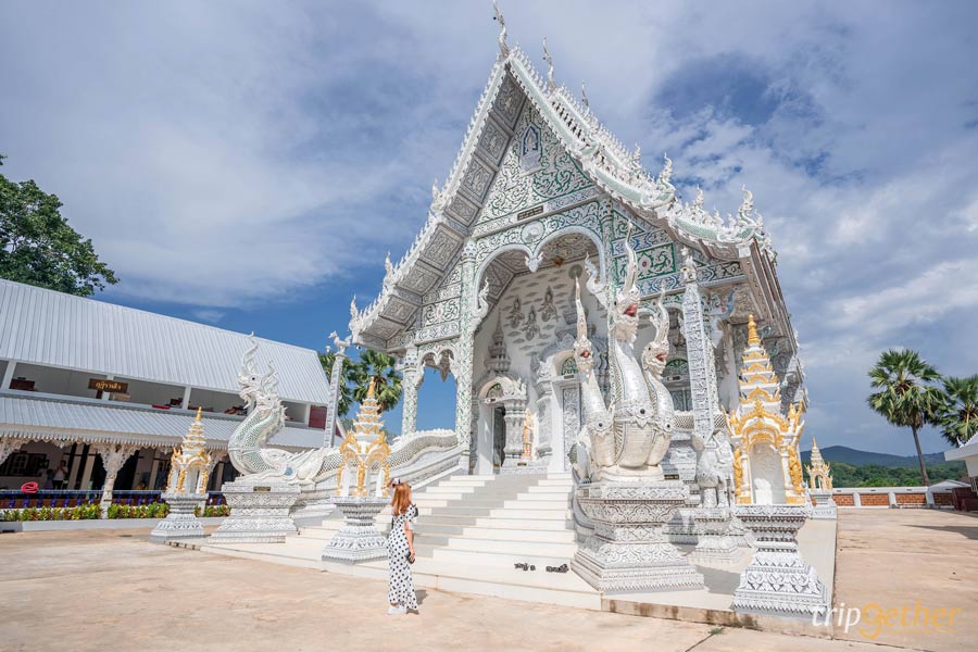 วัดมิ่งเมือง วัดสวย ที่เที่ยวน่าน โดดเด่นด้วยเป็นวัดสีขาวสะอาดตา ถูกสร้างขึ้นตามแบบสถาปัตยกรรมสไตลล์ล้านนาร่วมสมัย มีพระอุโบสถลายปูนปั้นด้วยฝีมือช่างไทยสุดวิจิตรบรรจง ทั้งยังเป็นที่ประดิษฐานของ เสาหลักเมืองน่าน บอกเลยว่าใครมาเที่ยวน่านต้องแวะมาชมความสวยงามของงานศิลปะล้านนา พร้อมสักการะขอพรเสาหลักเมืองเพื่อความเป็นสิริมงคล