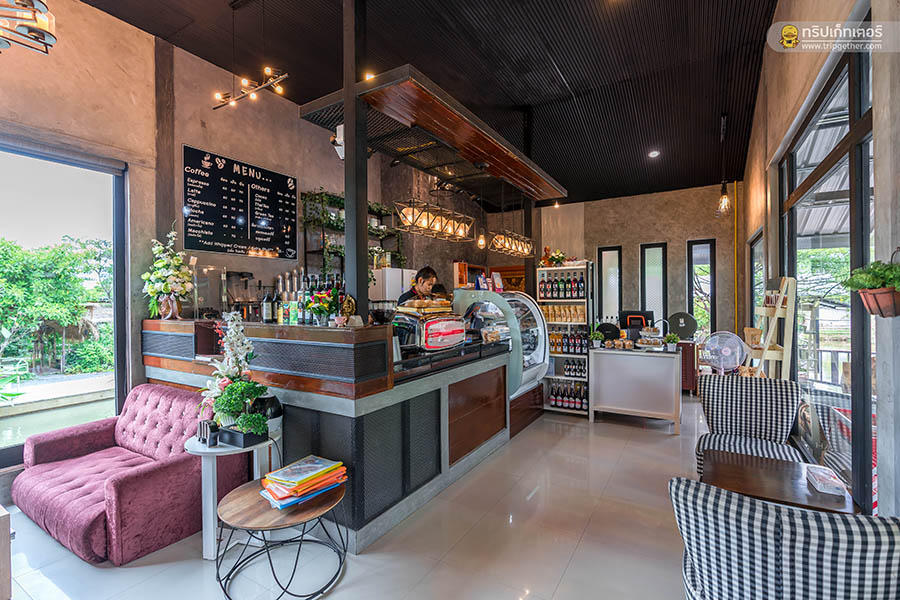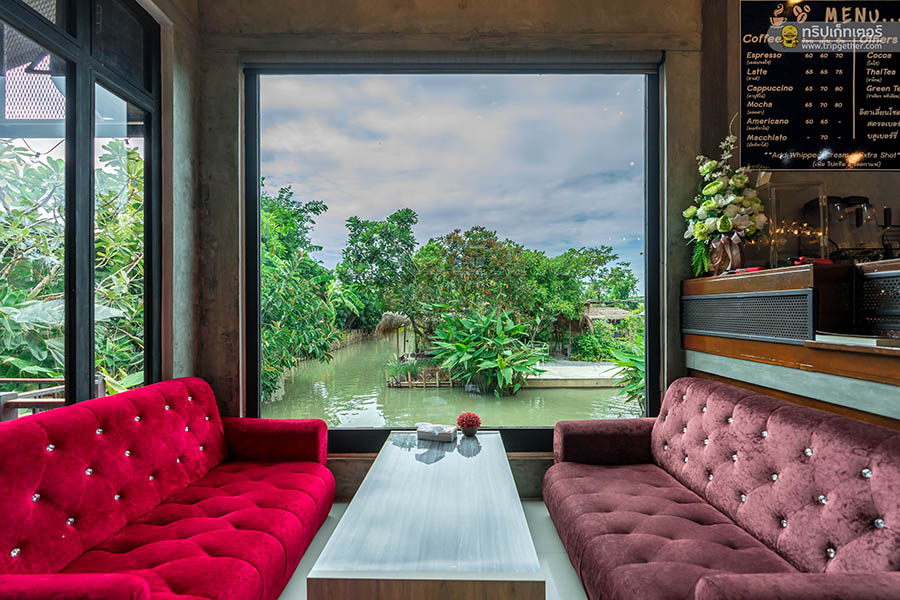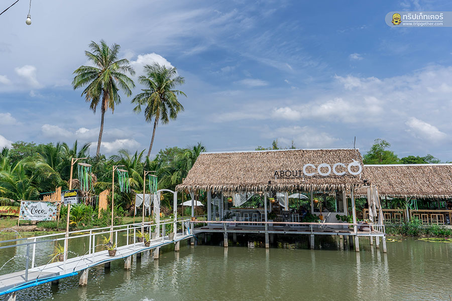 คาเฟ่มาในโทนสีขาวนวลตารับกับหญ้าคาที่มุงซ้อนทับหลังคาจั่วอยู่กลางลำคลองหนองบัว ซึ่งมีโซนที่นั่งทั้งอินดอร์และเอ้าท์ดอร์ ภายในตกแต่งด้วยโต๊ะเก้าไม้สีน้ำตาลอ่อน เป็นโทนหลักที่ตัดกับตัวคาเฟ่ได้เป็นอย่างดี มีบาร์ไม้ยาวและเบาะที่นั่งริมน้ำห้อยขาแบบชิลล์ๆ มีมุมที่นั่งแบบส่วนตัวหลากหลายมุม รวมถึงมุมที่นั่งกลางสวน แถมยังมีสะพานไม้สีขาวที่ทอดยาวพาดกลางลำคลองให้เดินเล่นชมบัวแบบเพลินๆ ถูกใจหลายคนเลยทีเดียว แถมยังมีมุมถ่ายรูปอีกเพียบ ด้วยพื้นที่ที่เปิดโล่งสามารถรับแสงธรรมชาติได้แบบเต็มๆ จึงมั่นใจได้เลยว่าจะต้องได้รูปสวยๆ แน่นอน เมนูของที่นี่เอาใจสายโคโคเลิฟเวอร์ เต็มไปด้วยเมนูมะพร้าวทั้งเครื่องดื่ม ของหวาน รวมถึงของคาวที่นำมะพร้าวมาเป็นส่วนประกอบได้อย่างลงตัว ใครที่อยากมาลองชิมเมนูแบบนี้ แวะมาถ่ายรูปเก๋ๆ ที่คาเฟ่ลับๆ ที่ศาลายาแห่งนี้ได้