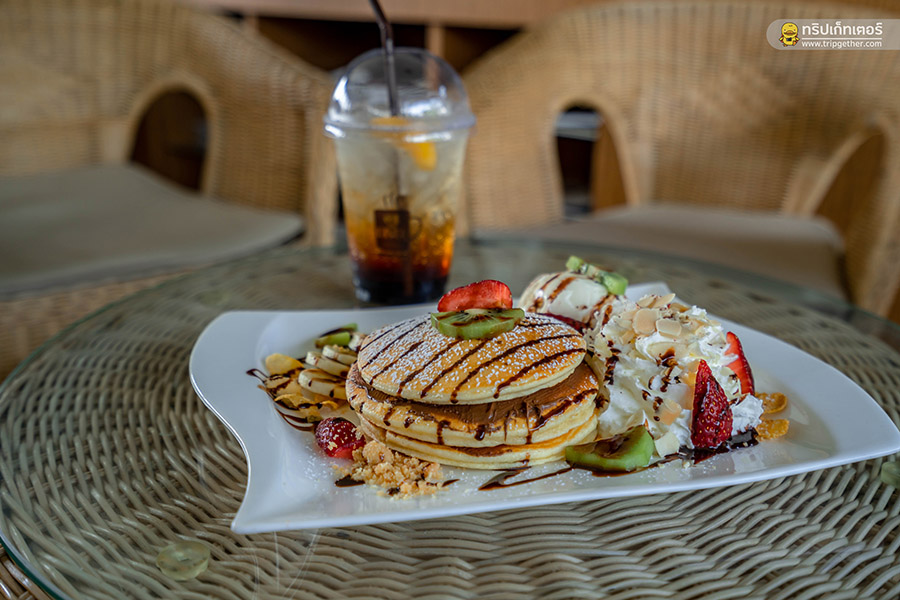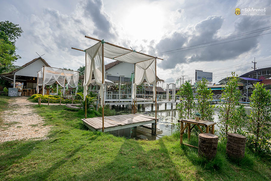 คาเฟ่ในบรรยากาศสุดชิลล์ ที่บ้านแพ้วสมุทรสาคร มาพร้อมโซนที่นั่งอินดอร์ในห้องแอร์ โซนเทอเรสริมสระน้ำและโซนซุ้มริมสระน้ำเหมาะกับการมานั่งพักผ่อนชิลล์ๆ ในวันหยุด ที่นั่งเพลิดเพลินจนไม่อยากลุกไปไหนเลยทีเดียว อาหารที่ร้านเป็นสไตล์ฟิวชั่น และอาหารไทย เมนูเด็ดแนะนำของที่นี่คือ สเต็กหมู สปาเก็ตตี้ผัดขี้เมาทะเล ตำไหลบัวกุ้งสด ตำคอหมูย่าง สำหรับสายหวานต้องสตรว์เบอร์รี่โทสต์ จับคู่มากับชาเขียวโกโก้เข้มข้น อิ่มแล้วก็สามารถพายเรือเล่นในสระน้ำได้อีกด้วย