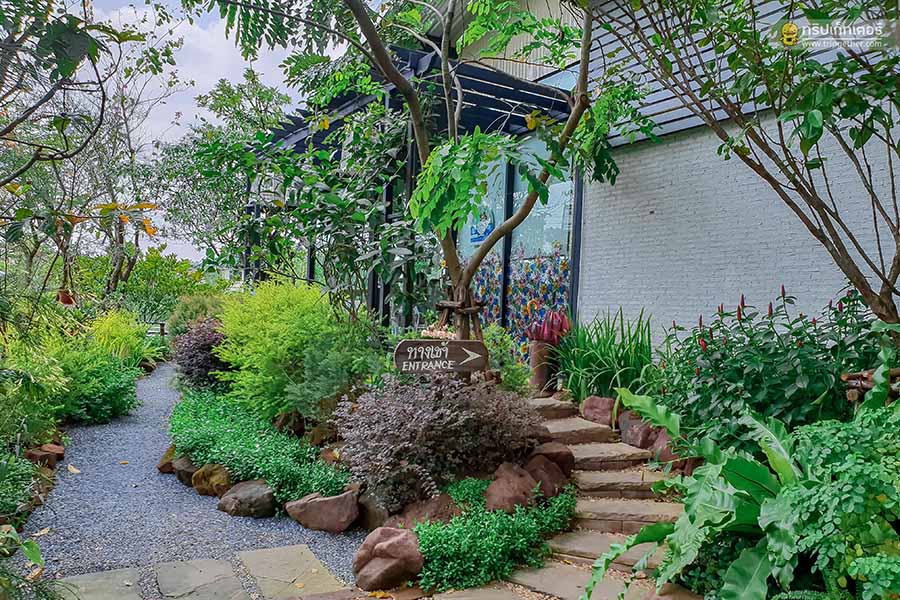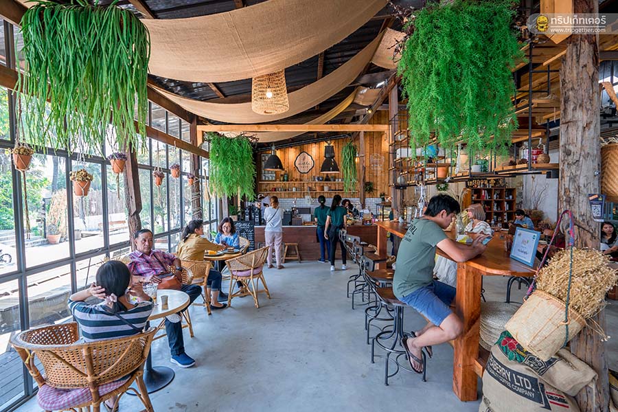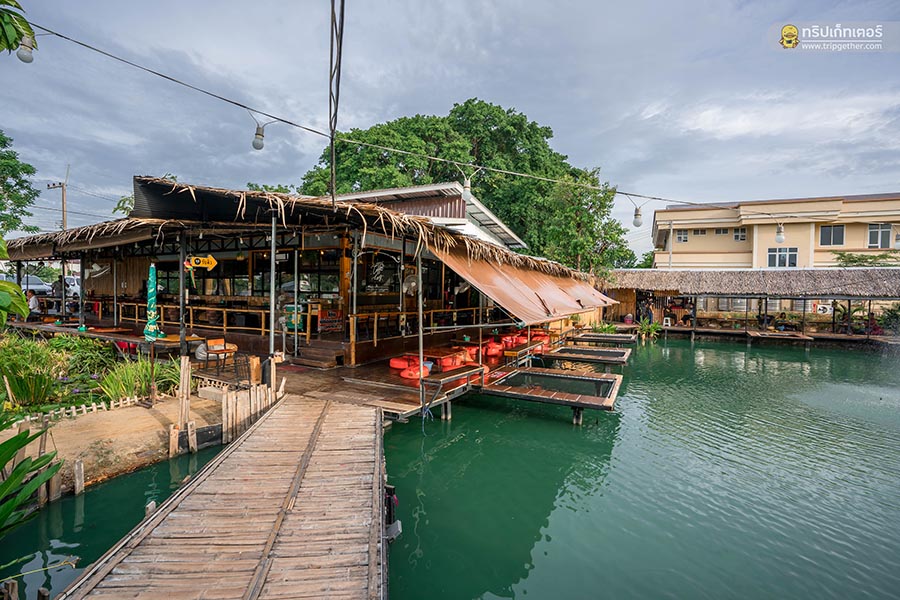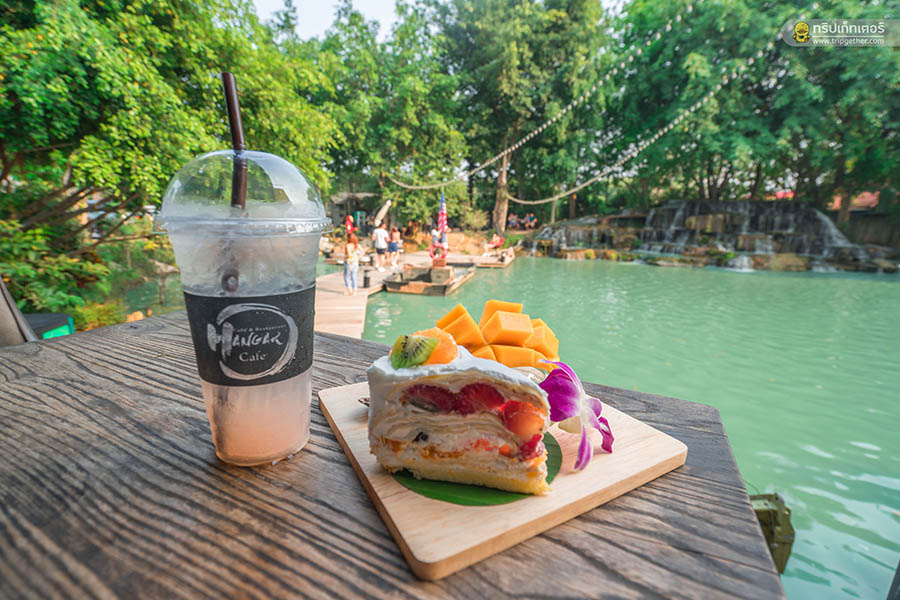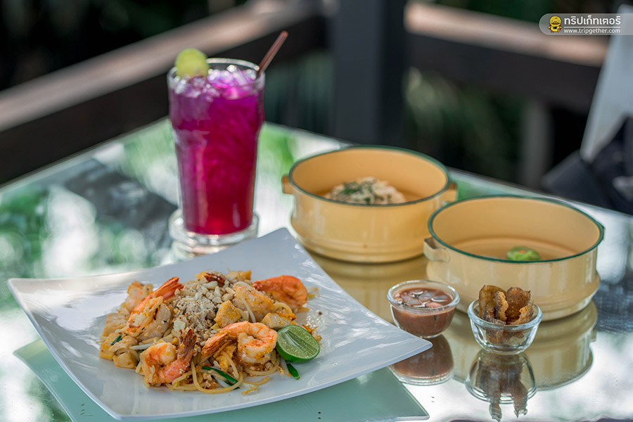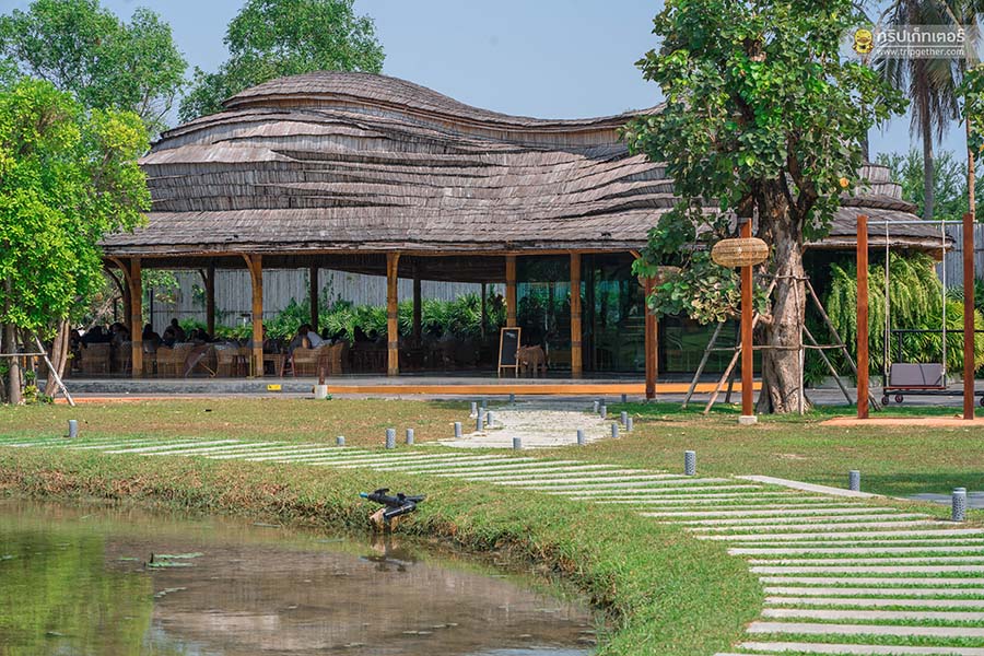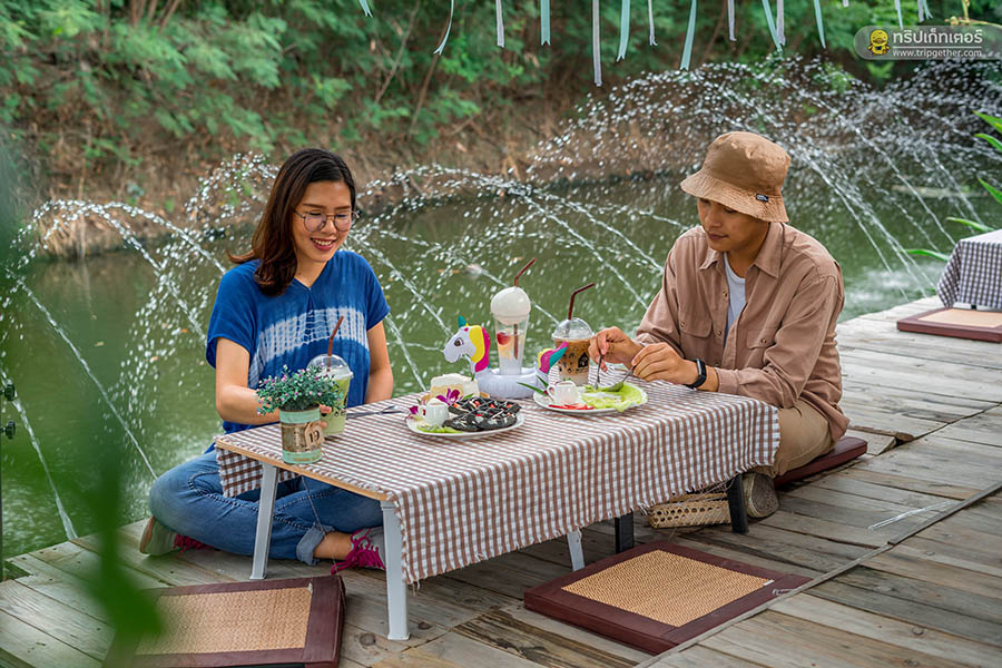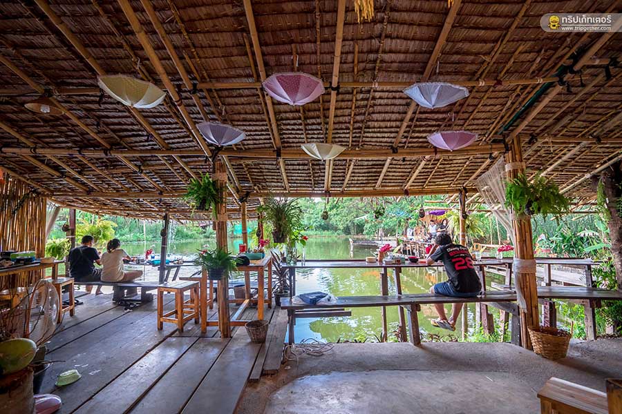 คาเฟ่และร้านอาหารออแกนิคต้อนรับทุกคนที่มาพักผ่อนกันด้วย ตัวร้านดีไซน์เก๋มาก ดูล้ำสมัยแต่อยู่ร่วมกับธรรมชาติได้อย่างลงตัว บรรยากาศโดยรอบดีมาก มีป่า มีน้ำ และสายลมที่พัดเข้ามาตลอดทั้งวัน จะนั่งรับลมบนดาดฟ้าหรือจะตากแอร์เย็นๆ ก็มีให้เลือกครบ ส่วนเมนูก็สุดครีเน้นเสริฟสไตล์ไทยฟิวชั่นผสมผสานวัฒนธรรมได้อย่างมีเสน่ห์ และจานเด็ดก็ต้องยกให้ สปาเก็ตผัดไทย สุดเข้มข้นรสชาติเข้ากันเป็นอย่างดี นอกจากนี้ยังมีสะพานที่ยื่นไปกลางน้ำ ให้เดินชิลล์ถ่ายรูปเท่ๆ อีกด้วย