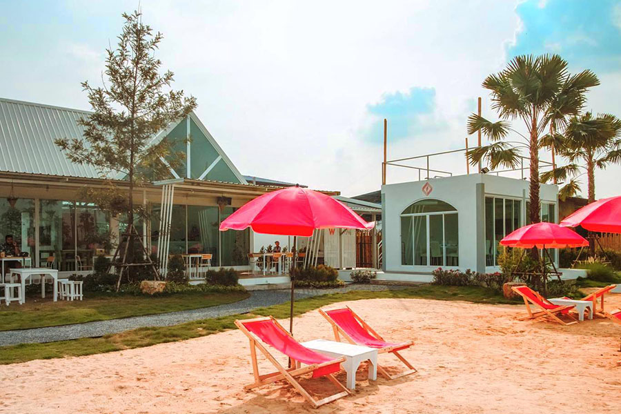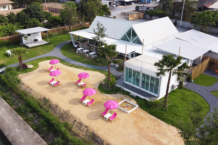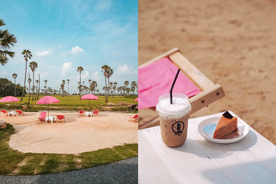 The Aileen Cafe คาเฟ่หลังสีขาวที่ตกแต่งเสมือนอยู่ชายหาด สะดุดตาด้วยร่มและที่นั่งสีชมพูสดใส เหมาะกับสาวๆที่อย่างมาพักผ่อน นั่งกินขนมกับเพื่อนๆ พร้อมกับเสพบรรยากาศทุ่งนาสีเขียวที่อยู่ตรงหน้า หรือถ้าวันไหนแดดแรงมากๆก็สามารถหนีเข้าไปนั่งในห้องแอร์ได้เลย ที่นั่งเยอะ พื้นที่กว้างขวาง นอกจากนี้ยังมีเมนูอาหารและเครื่องดื่มให้บริการ รวมไปถึงเค้ก ไอศกรีม ชา กาแฟครบ สาวๆคนไหนชอบถ่ายรูป แต่ยังคงอยากได้บรรยากาศที่เป็นธรรมชาติ ที่นี้ถือเป็นตัวเลือกที่ดีเลยสำหรับวันพักผ่อน