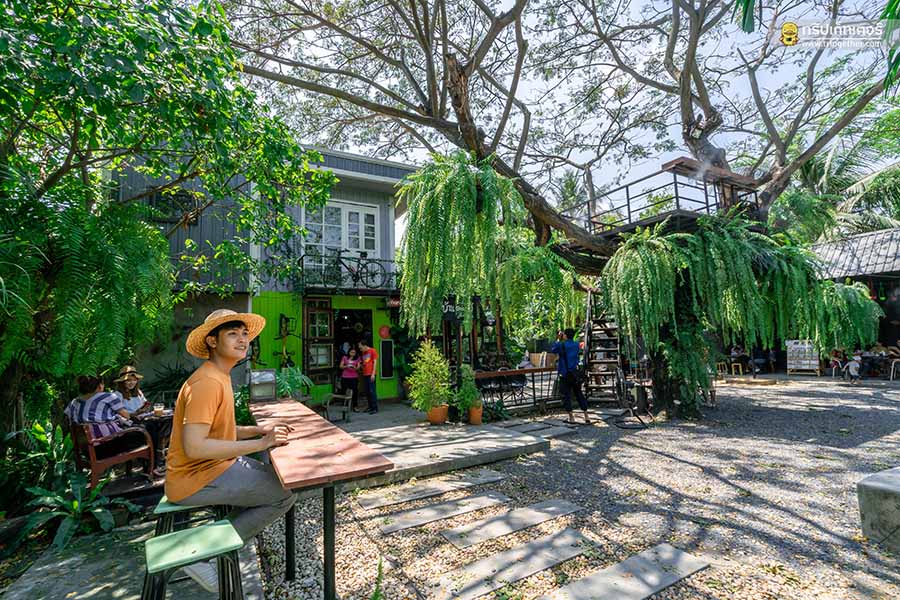 บ้านสวนพาฝัน คาเฟ่สุดร่มรื่นกลมกลืนวิถีชุมชนในสวนมะพร้าวที่มีสตอรี่มาจากลูกชาวสวนมะพร้าวและแฟนอยากจะกลับมาอยู่บ้านแต่ไม่ชอบทำสวนจึงได้ไอเดียเปิดคาเฟ่ในสวนมะพร้าวสุดร่มรื่น และไฮไลท์สุดโดดเด่นของที่นี่คือ การเดินทางมาที่คาเฟ่นั้นต้องไปจอดรถที่วัดหนองสองห้องแล้วทางร้านจะมีบริการเรือรับส่งพาไปยังคาเฟ่ เมื่อเดินเข้ามาถึงก็ได้รับการต้อนรับเป็นอย่างดีด้วย Welcome Drink ที่นี่เน้นเสิร์ฟอาหารไทยฟิวชั่นจากคนในชุมชนที่ทางคาเฟ่เปิดให้เข้ามาทำงานเรียนรู้การทำอาหารจากร้าน ผักผลไม้ที่ใช้ในคาเฟ่ก็มาจากสวนของชาวบ้านในชุมชน แถมพิซซ่าของร้านนั้นโดดเด่นด้วยการอบจากเตาถ่านที่ออกแบบโดยชาวฟินแลนด์โดยเฉพาะเลย นอกจากนี้ยังมีเบเกอรี่โฮมเมดพร้อมเสิร์ฟให้คุณลิ้มลองได้แบบไม่อั้น