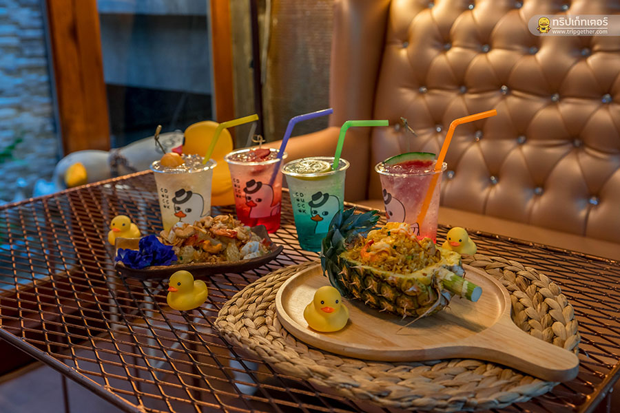 คาเฟ่สไตล์โฮมมี่ได้ฟิวเหมือนกินข้าวอยู่ที่บ้าน พร้อมวิวคลองท่าแล้ง ที่มีโซนให้เลือกนั่งทั้งโซนอินดอร์ในห้องแอร์ และเอาท์ดอร์ใต้ถุนเรือนไทย ทั้งยังมีพื้นที่ให้นั่งเล่นริมน้ำท่าแล้ง พร้อมเรือเป็ดขนาดใหญ่นั่งได้ 4-5 คนให้ถีบเล่นในลำธารอีกด้วย อาหารของที่นี่เป็นฝีมือของคุณแม่ของเจ้าของร้านเอง เมนูรสเด็ดของที่นี่ที่มาแล้วไม่สั่งไม่ได้คือ ยำส้มโอ ที่ใช้ส้มโอออแกนิคจากสวนผึ้งที่มีรสหวานอมเปรี้ยวคลุกเคล้ากับน้ำยำแล้วได้รสชาติเผ็ดเปรี้ยวหวานลงตัว และนอกจากนั้นยังมีไก่ทอดซอสส้มสูตรเฉพาะหาทานที่ไหนไม่ได้ต้องมาชิมที่ โคโค่ ดั๊ก คาเฟ่ เท่านั้น