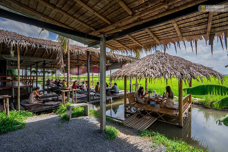 ร้านอาหารอีสานแซ่บๆ ย่านพุทธมณฑลสาย 5 ที่ผสมผสานความเป็นคาเฟ่เข้าด้วยกัน สำหรับที่นั่งภายในร้านมีให้เลือกทั้งแบบ Indoor ในห้องแอร์เย็นฉ่ำ และ Outdoor โซนยอดฮิตที่มาพร้อมสระมรกตสีเขียวให้คุณได้นั่งห้อยขาโพสท่าสวยๆ ถ่ายรูป มีน้องเป็ดว่ายน้ำให้คุณได้นั่งรับประทานอาหารกันอย่างเพลิดเพลิน และนอกจากนั้นยังมีโซนเปิดใหม่อย่างสะพานบึงบัวและโซนปลายนาที่คุณจะได้นั่งรับประทานอาหารพร้อมดื่มด่ำบรรยากาศของธรรมชาติได้อย่างเต็มอิ่ม ยังไม่หมดเพียงแค่นี้นะยังมีมุมถ่ายรูปสวยๆ อย่างรังนกบาหลีและตาข่ายกลางทุ่งนาอีกด้วย เรียกได้ว่ามารับประทานอาหารกันที่นี่ได้ครบทุกรสจริงๆ